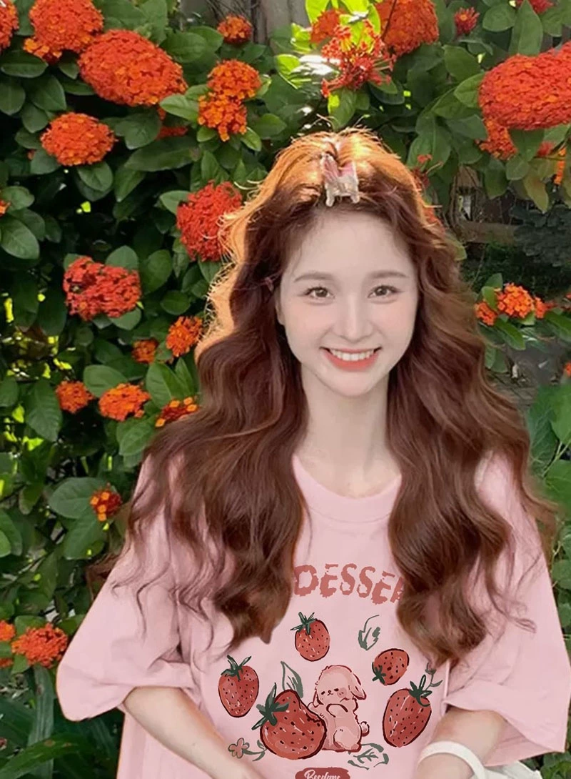 | nameOriginal | Fat girl looks slim, short-sleeved T-shirt, pink ins trendy summer plus size women's clothing, fat mm, fashionable to cover belly and hide meat |