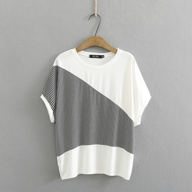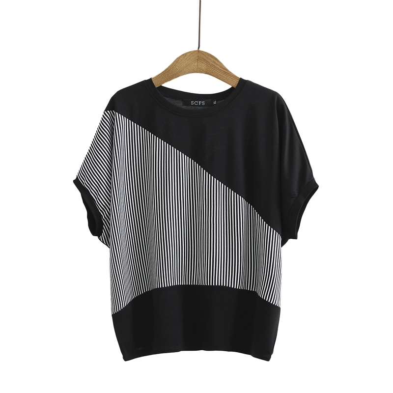 | nameOriginal | Fat girl loose color block striped bat sleeve pullover |