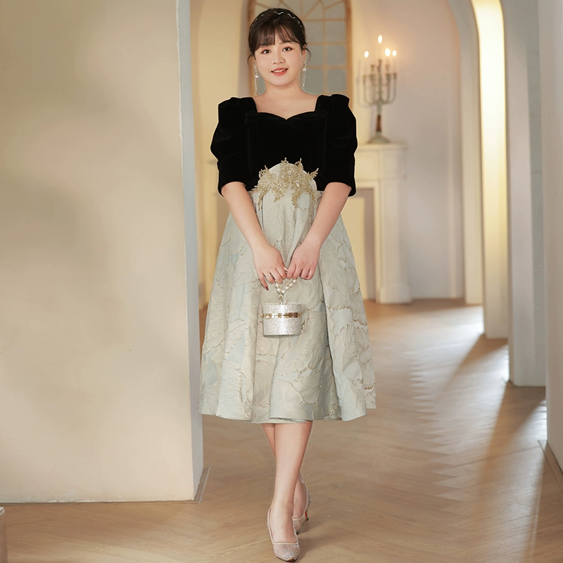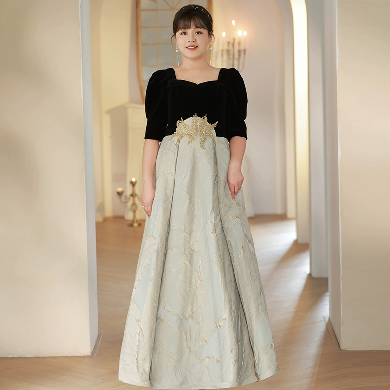 Fat girl performs plus-size French 200-pound evening dress