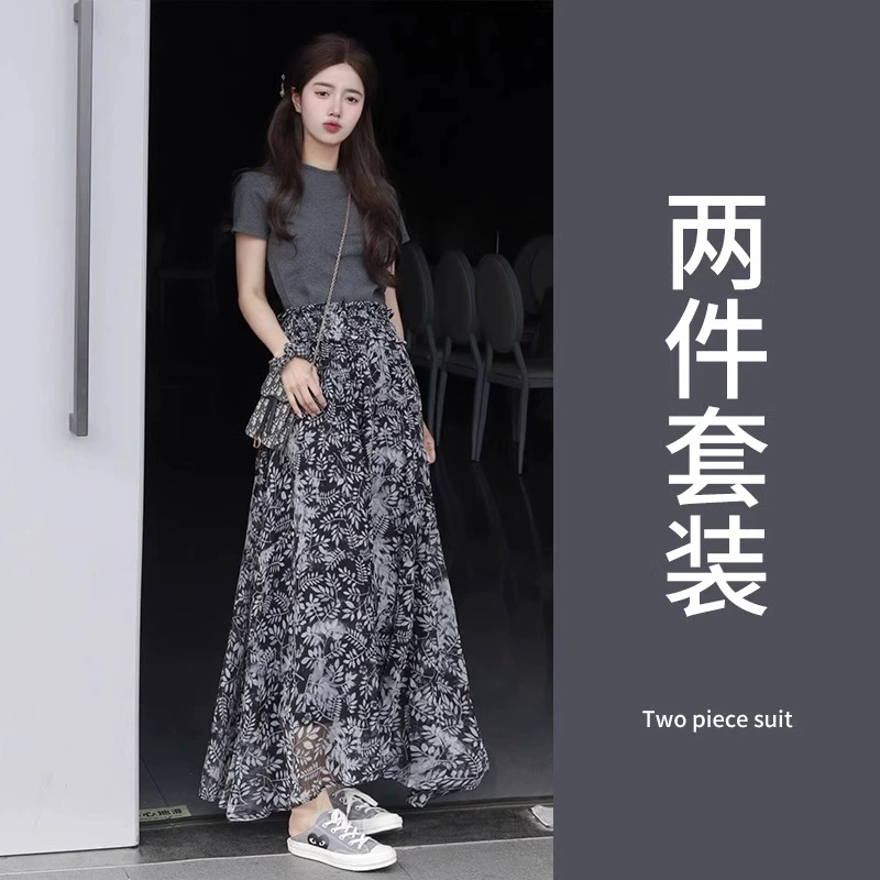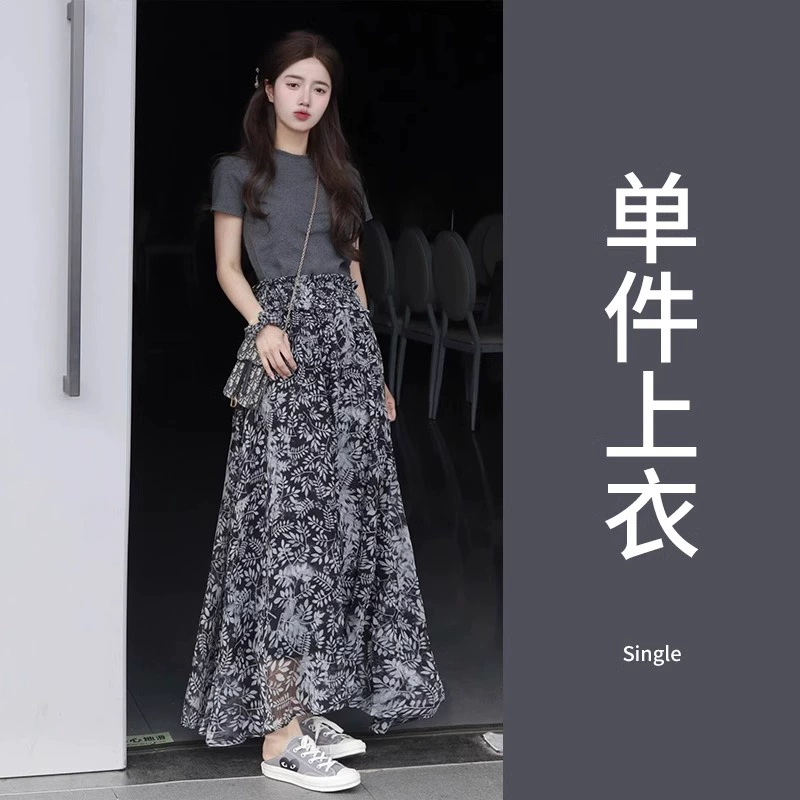 | nameOriginal | Fat girl slimming gray floral skirt top |