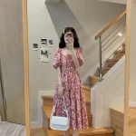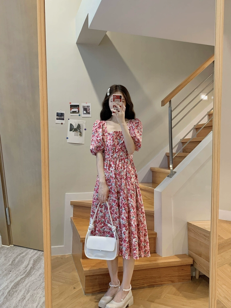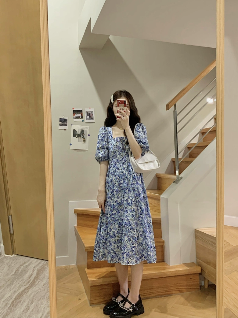 | nameOriginal | Fat girl square neck puff sleeve fairy belly-covering dress |