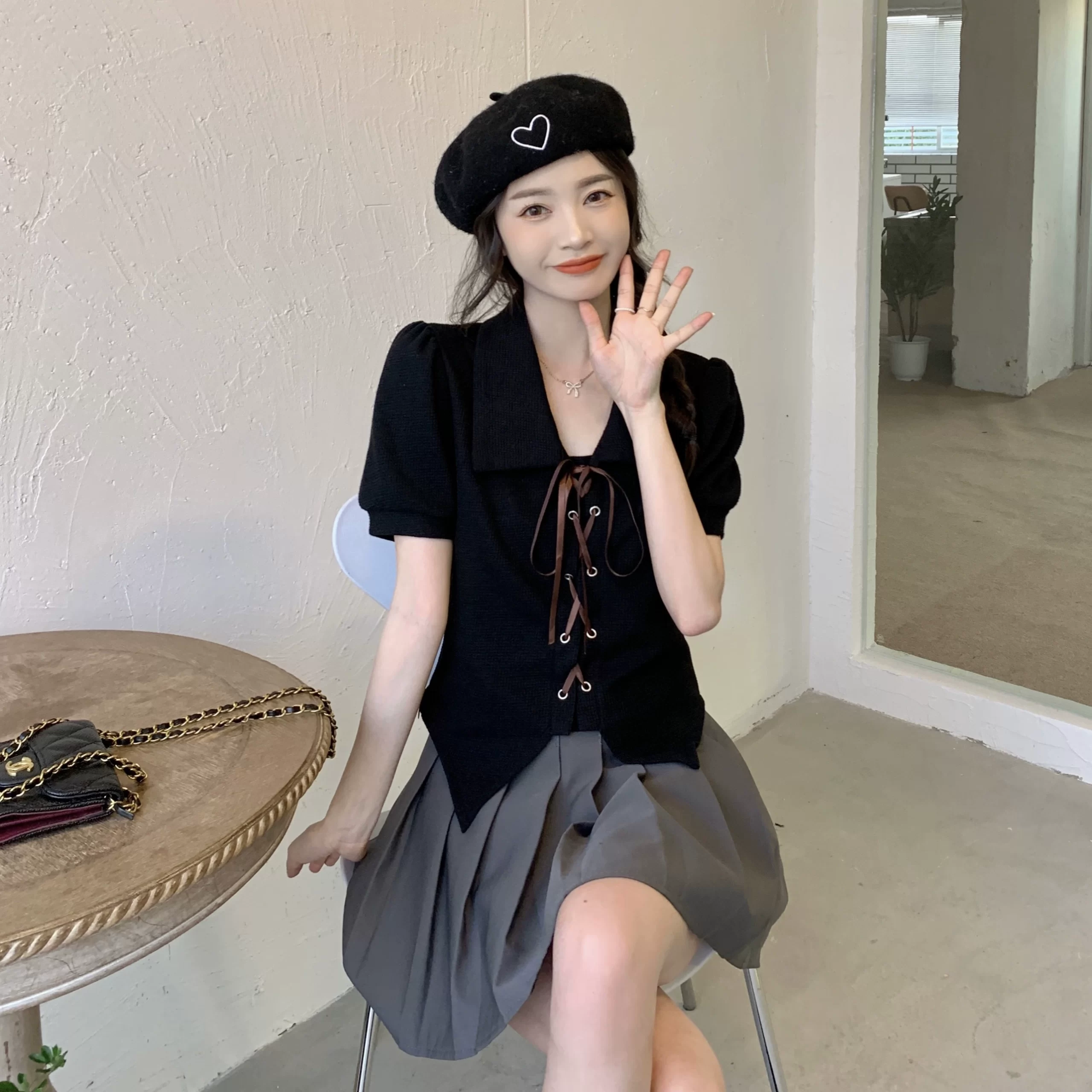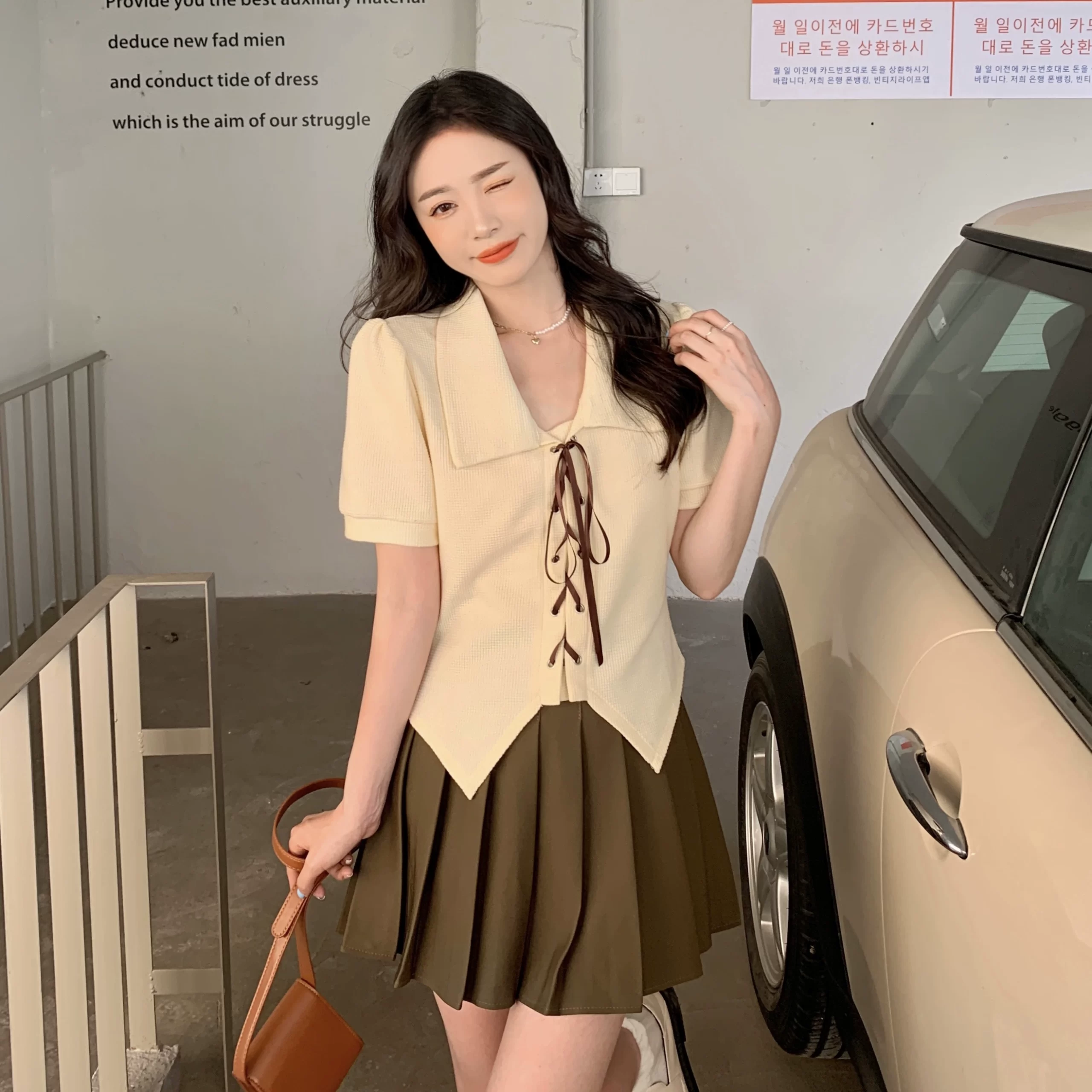 | nameOriginal | Fat girl's short-sleeved shirt with irregular strap design |