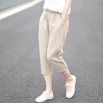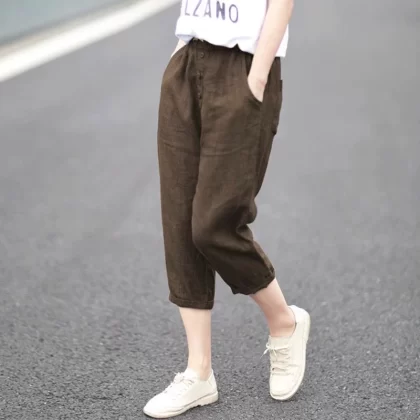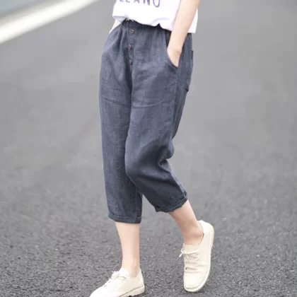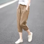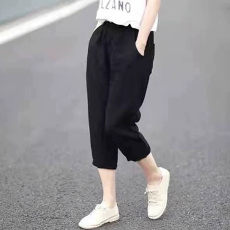 Fat mm cotton and linen carrot pants for women summer 2024 new large size linen thin loose loose seven-eighth pants harem wide leg pants