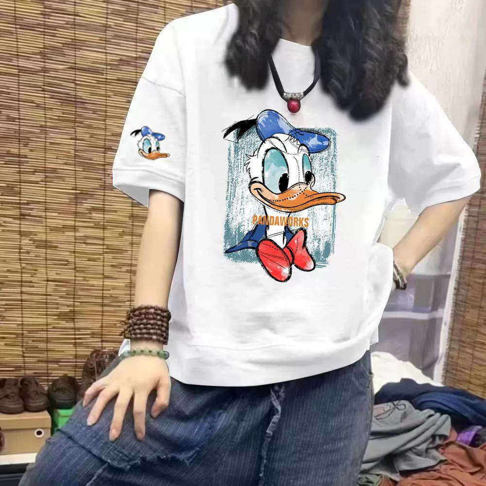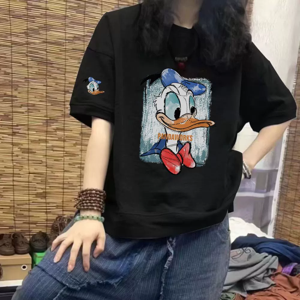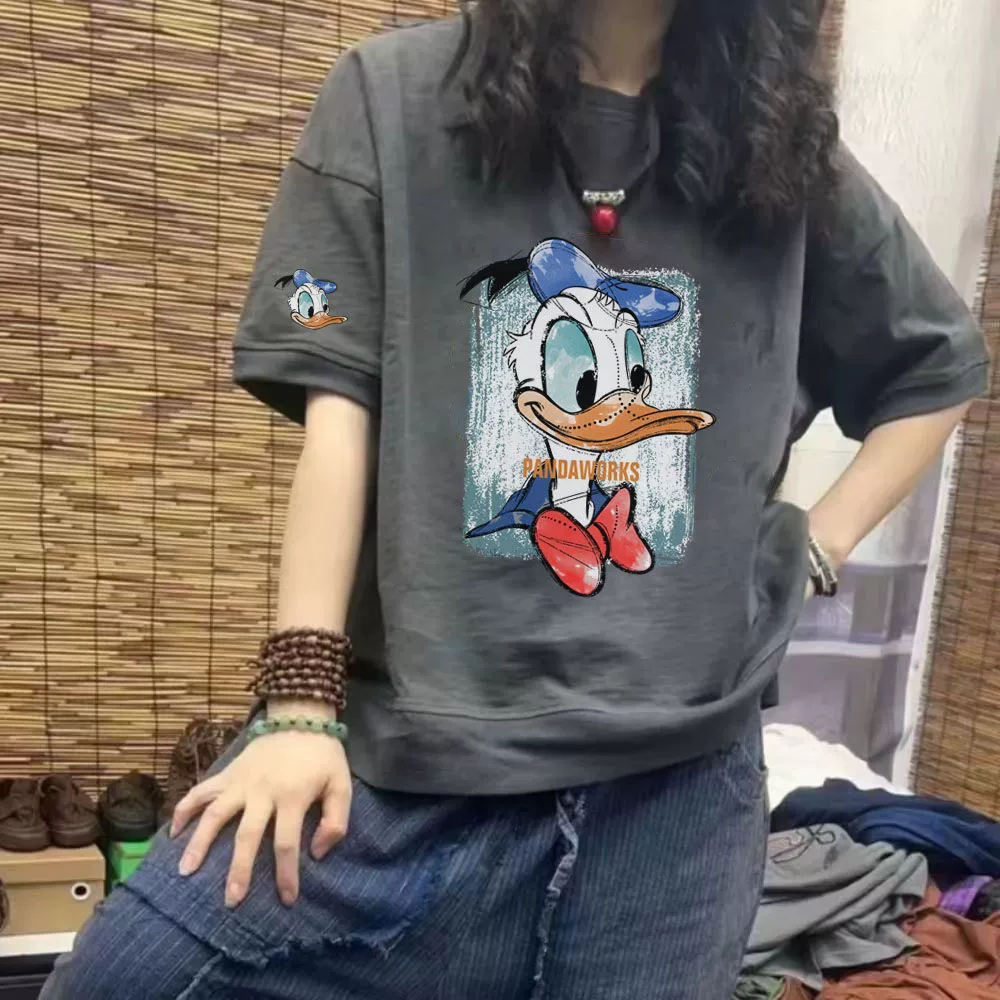 | nameOriginal | Fat mm extra large size 300 pounds pure cotton short-sleeved T-shirt for women summer 2024 new European station mid-length printed top |