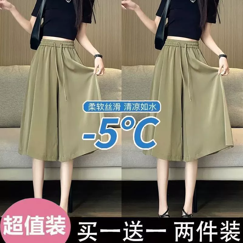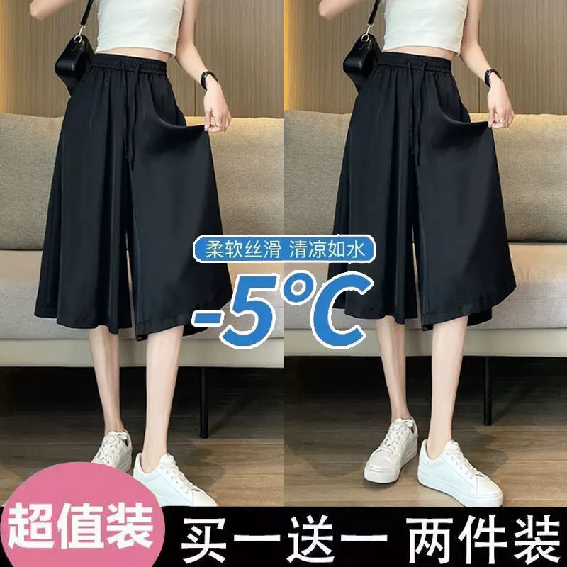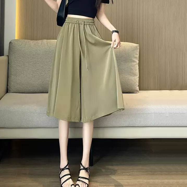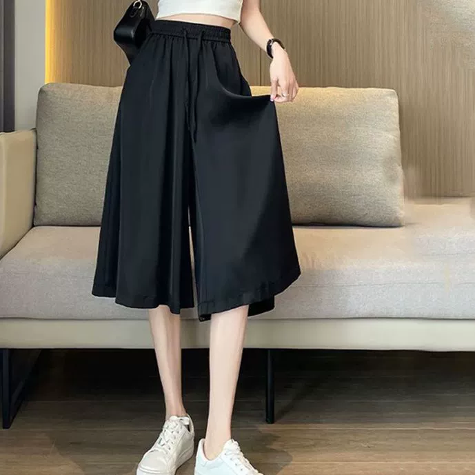 Fat mm Ice Silk Thin High Waisted Casual Over-the-Knee Wide-leg Pants