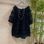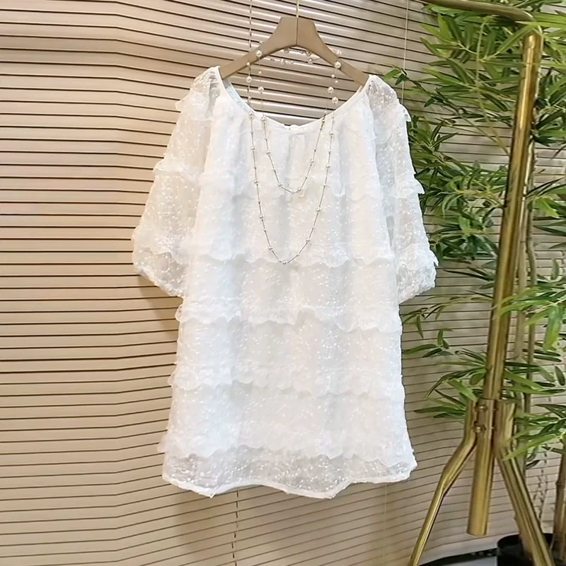 Fat MM loose age-reducing lady style niche design Korean style plus size women’s casual and versatile ruffled short-sleeved top