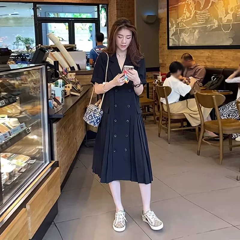 | nameOriginal | Fat mm plus size royal sister light mature style pleated suit dress double breasted women's high-end temperament long skirt summer |