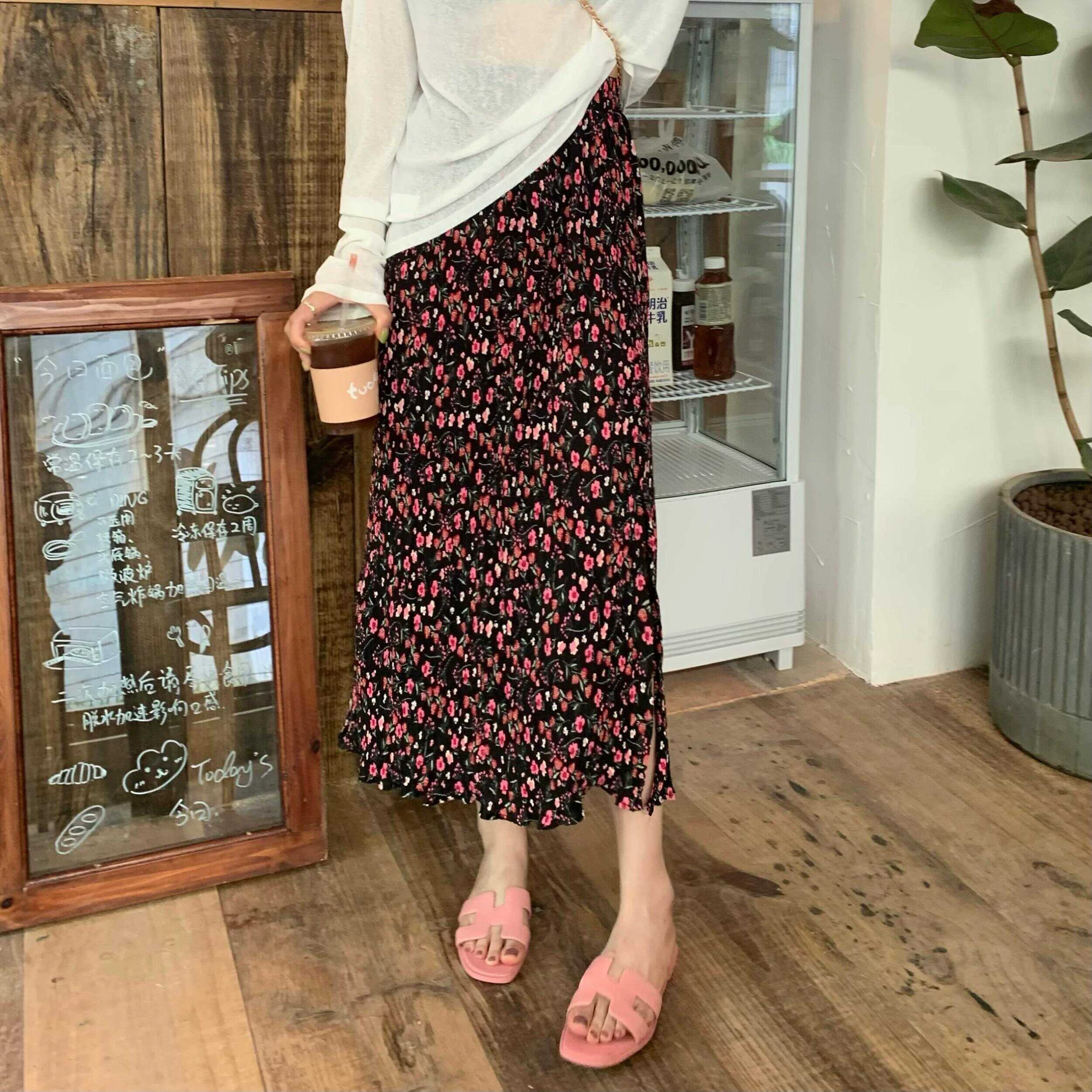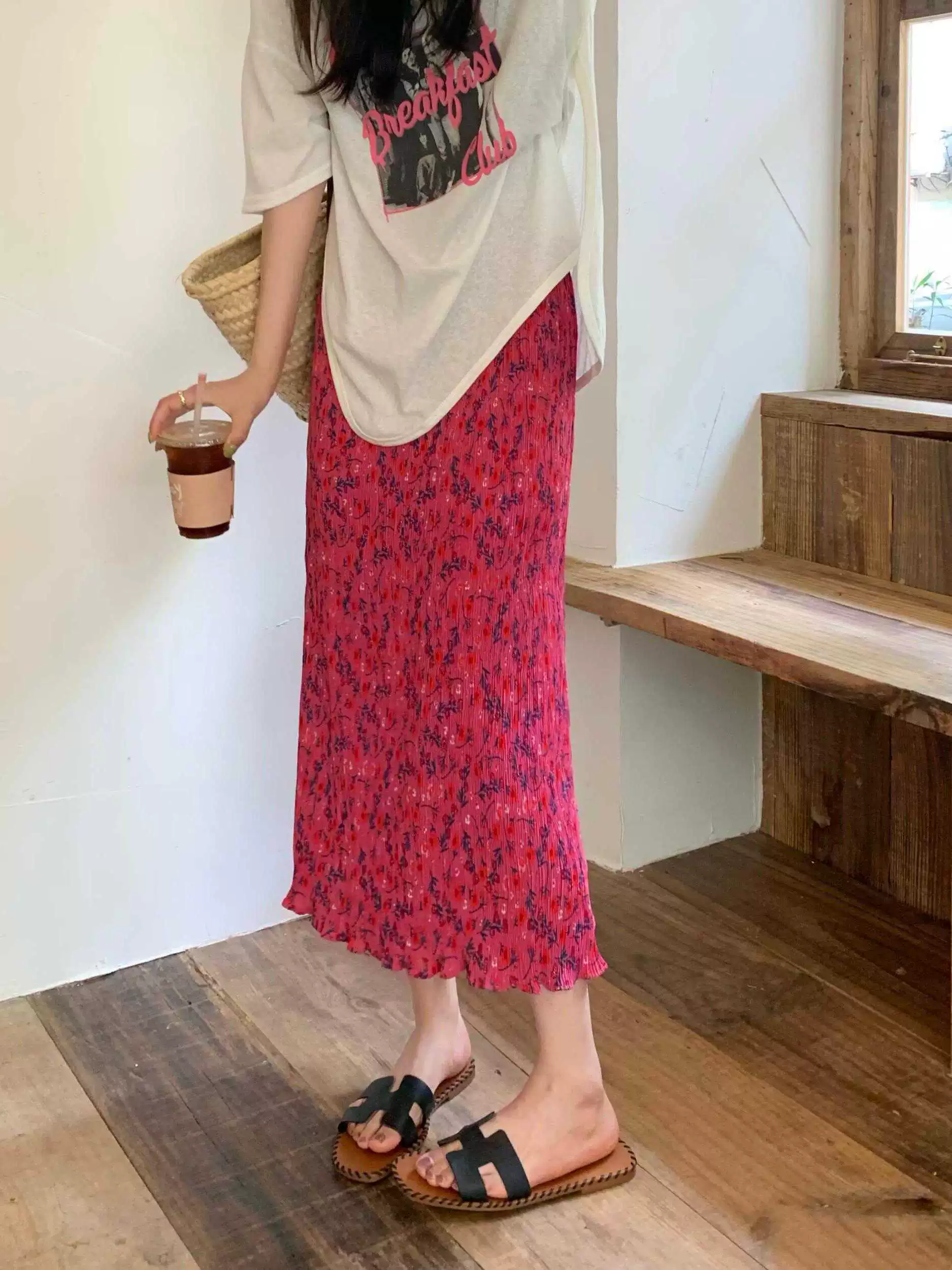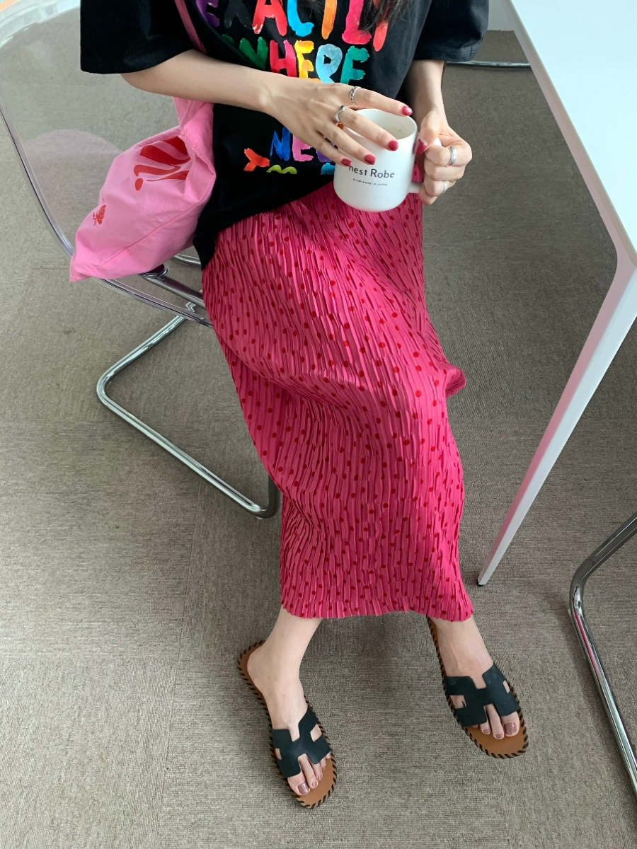| nameOriginal | Fat mm polka-dot chiffon floral rose red pleated skirt |