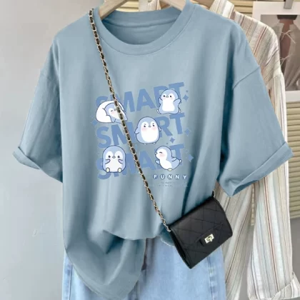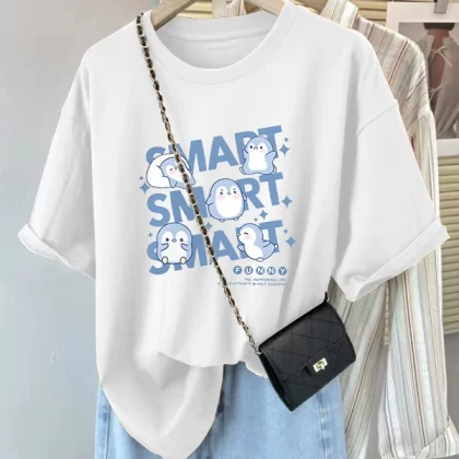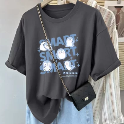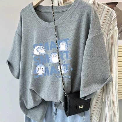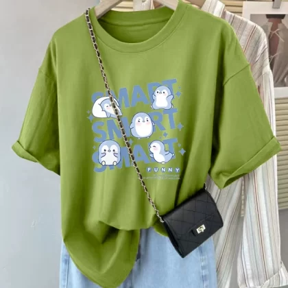 | nameOriginal | Fat mm pure cotton right shoulder short-sleeved T-shirt women's summer new oversize large size loose slimming belly-covering top |