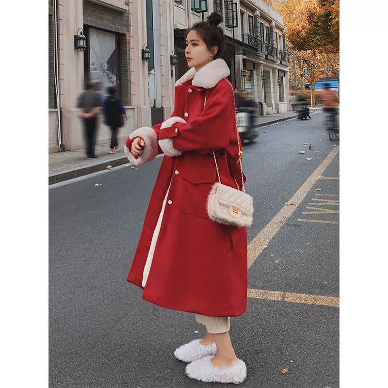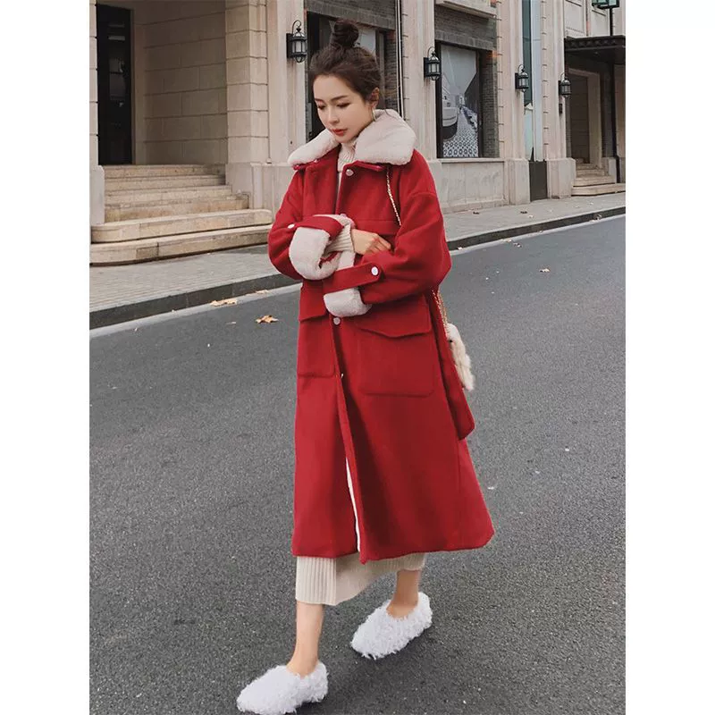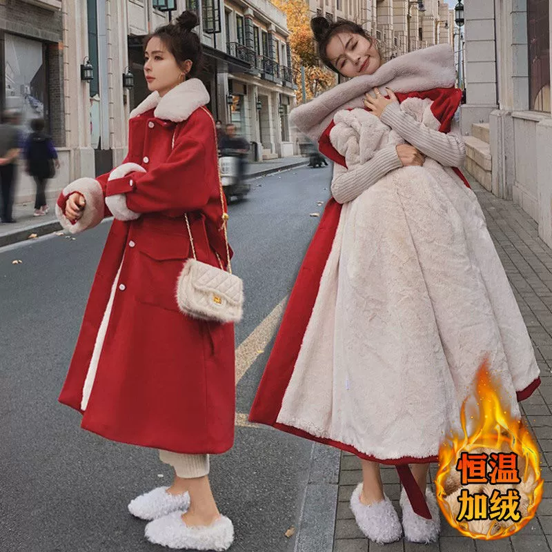 | nameOriginal | Fat MM red woolen coat for women 2024 new autumn and winter plus velvet warm jacket oversized woolen coat for women |