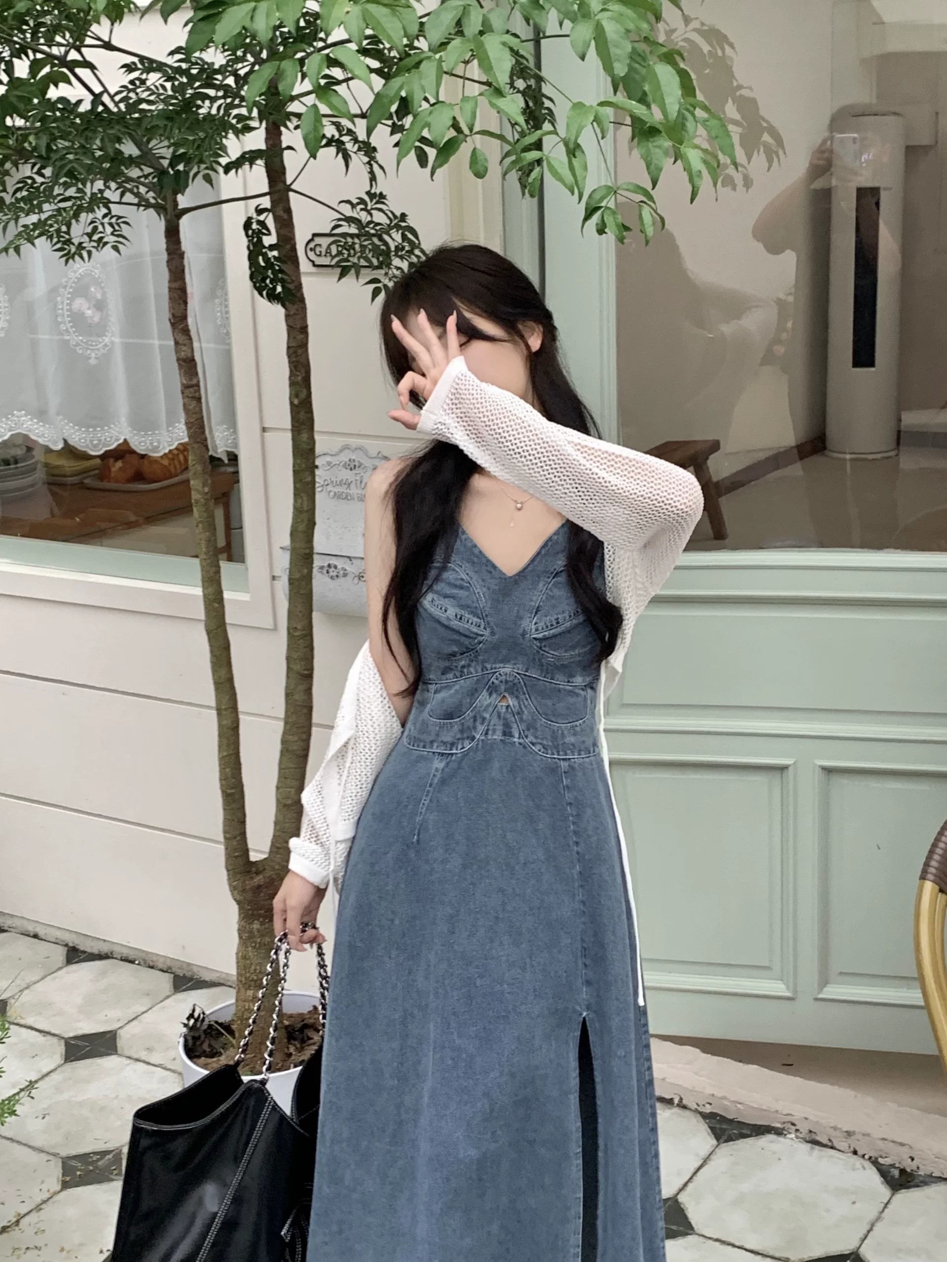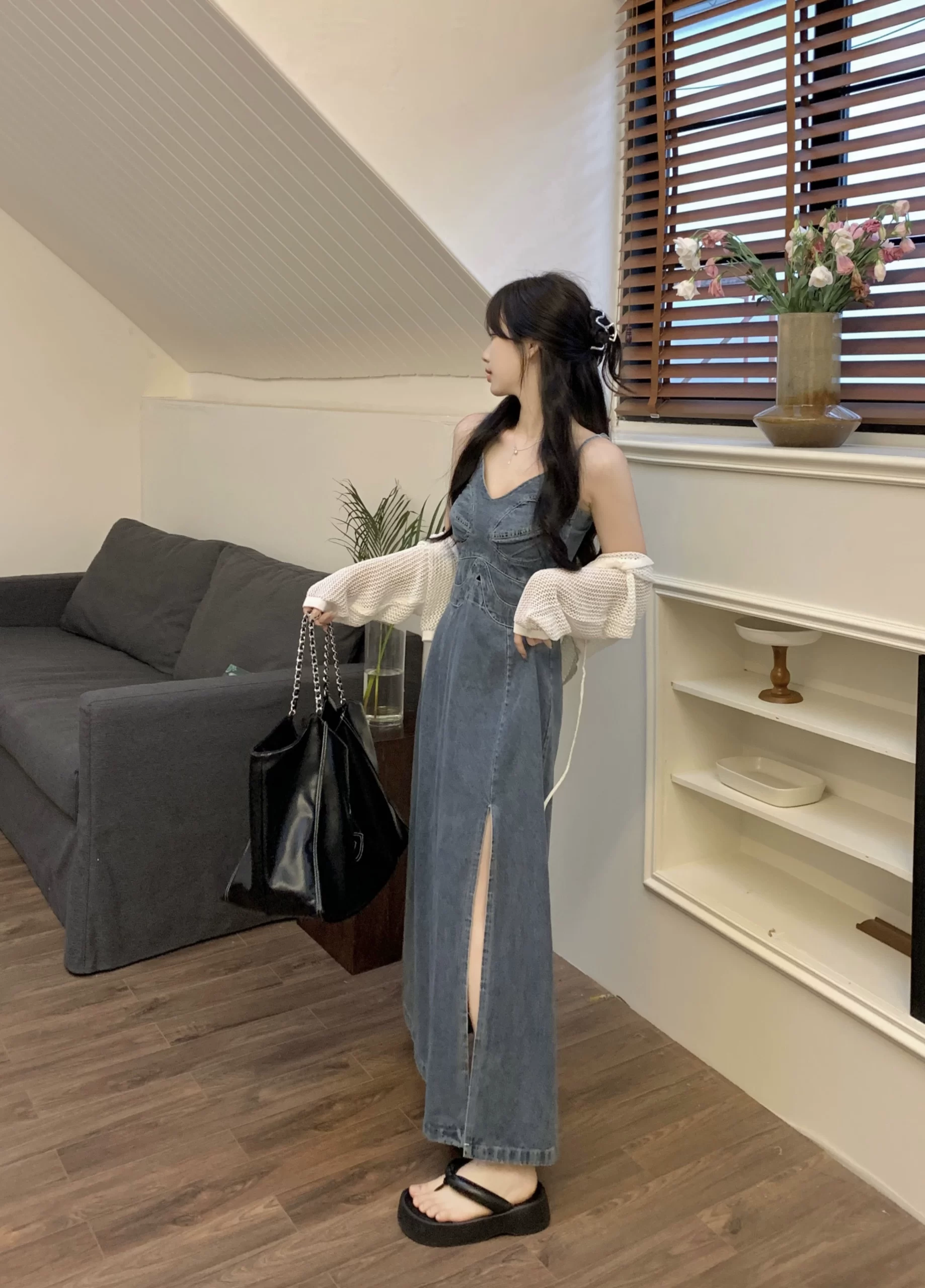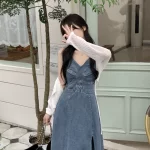 Fat mm slimming belly-covering design slit V-neck suspender