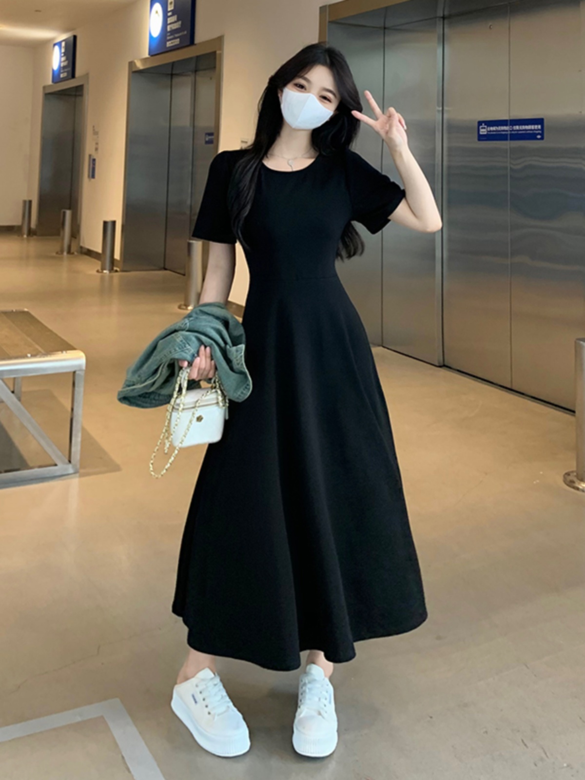 | nameOriginal | Fat mm slimming waist black belly covering long skirt t-shirt |