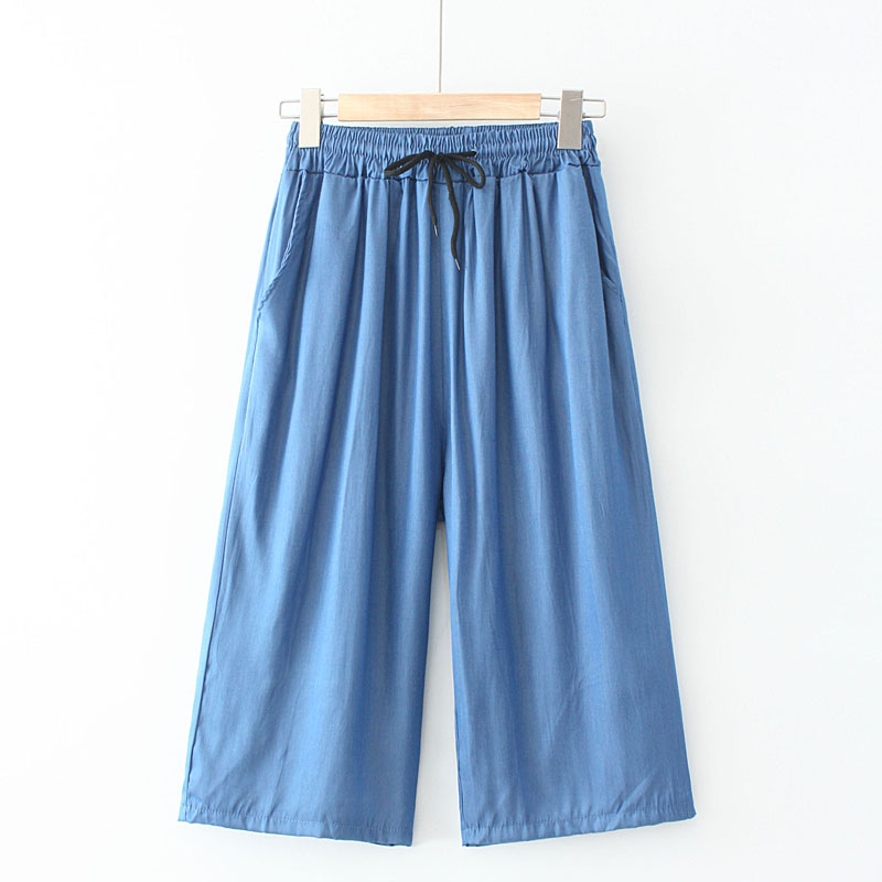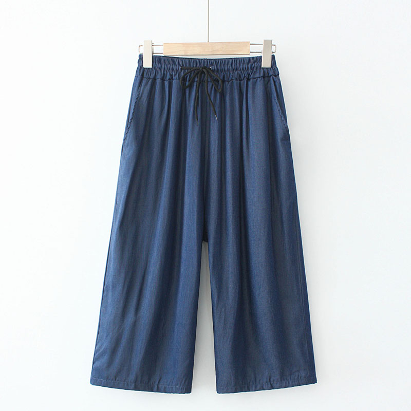 | nameOriginal | Fat MM Summer Korean Style New Plus Size Women's Casual Pants Elastic Waist Tie Tencel Denim Wide Leg Cropped Pants |