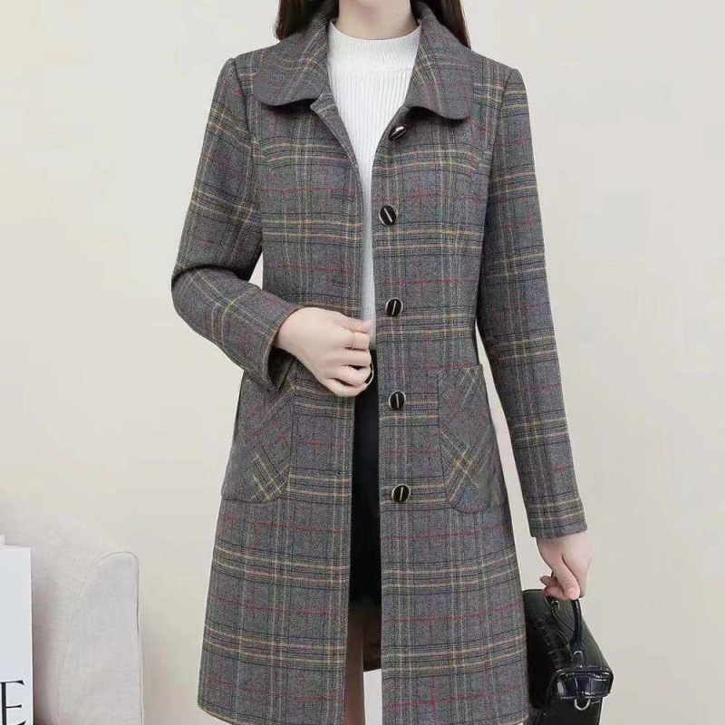 | nameOriginal | Fat mm300 Jin Loose Plaid Woolen Coat Women's Spring and Autumn Joker Korean Style Medium and Long plus size Woolen Coat |