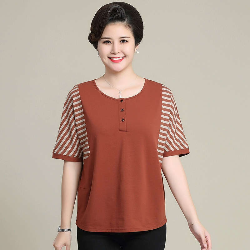 | nameOriginal | Fat Mom Summer Wear Short Sleeve Round Neck Pure Cotton T-Shirt New Middle-aged and Elderly Women's Plus Size Plus Size Loose Shirt |