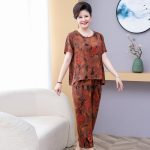 | nameOriginal | Fat mother summer short sleeve suit foreign style loose plus fat plus size grandma 200kg middle-aged two-piece set for women |