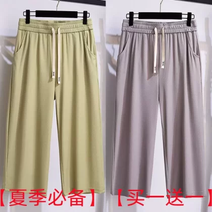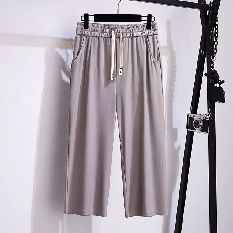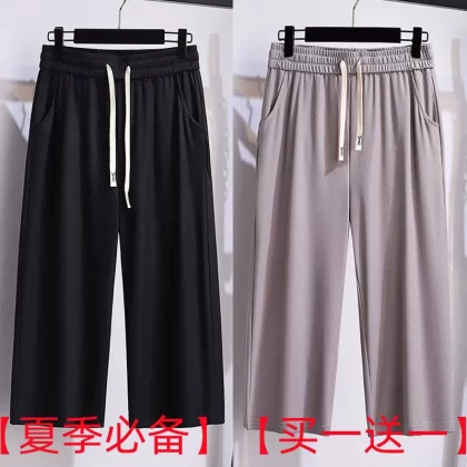 | nameOriginal | Fat people plus size casual cool ice silk high waist wide leg pants |