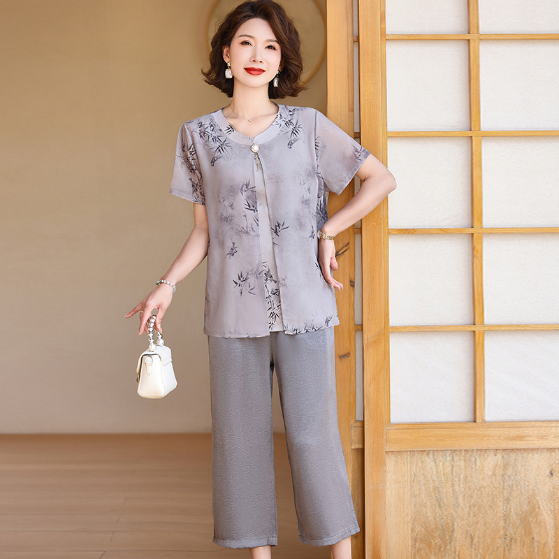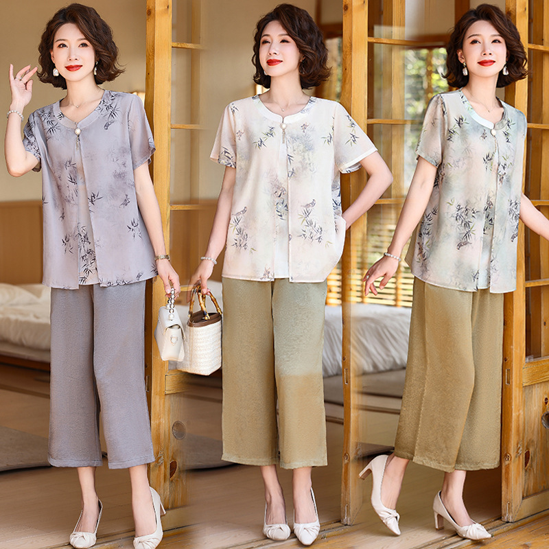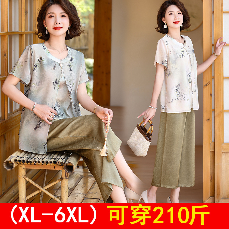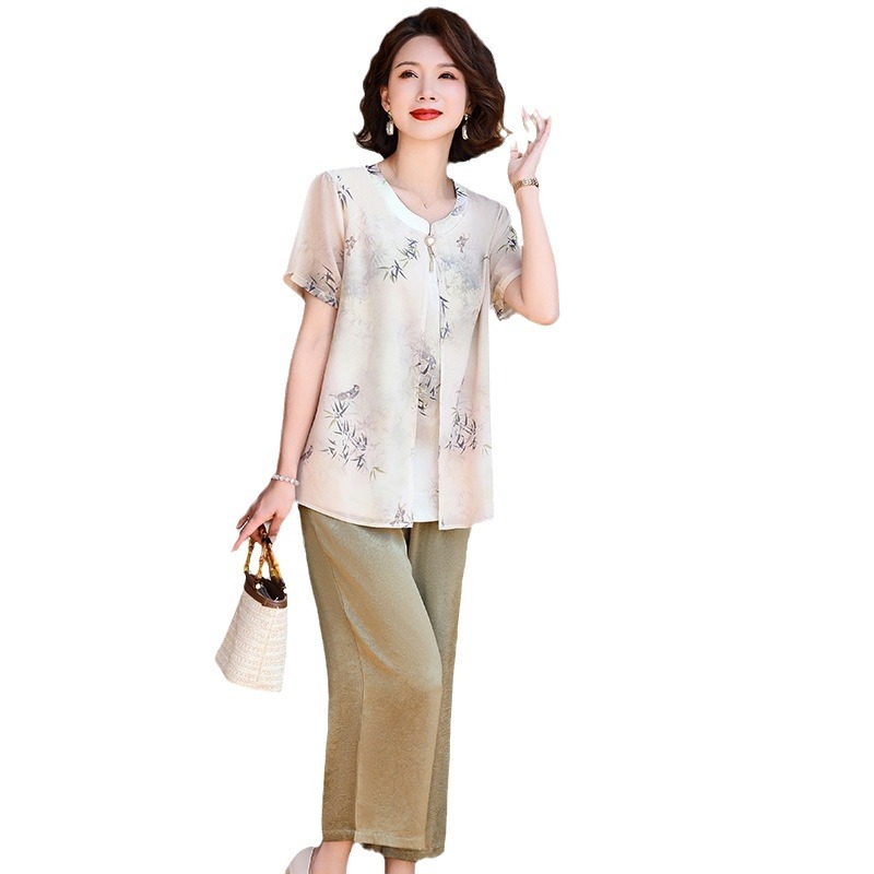 Fat Plus Size Mother's Shirt Spring and Summer Fat Lady Foreign Style Shirt 40 Years Old 50 Middle-aged Women's Fashion suit