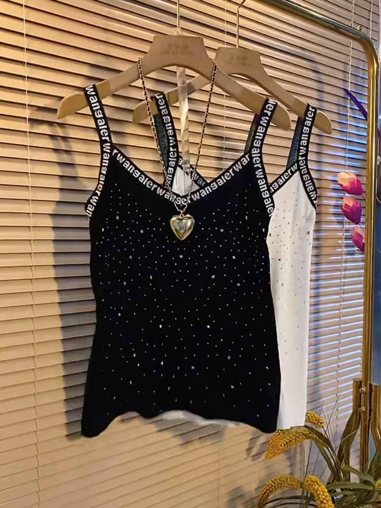 Fat sister hot diamond simple slim slim camisole plus fat plus size women's Korean version 2023 new versatile bottoming shirt