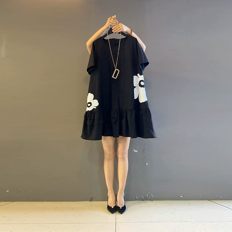 | nameOriginal | Fat sister MM loose large flower ruffle dress |