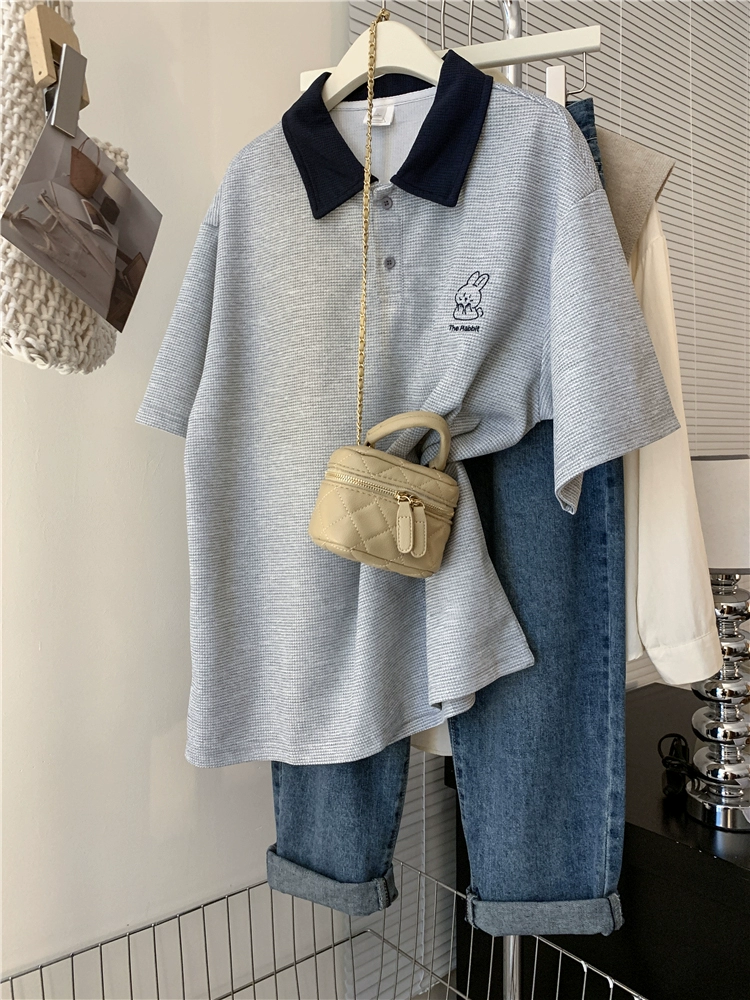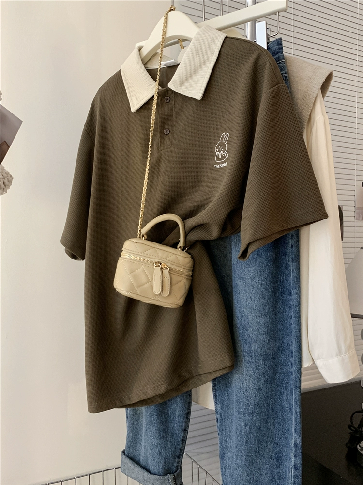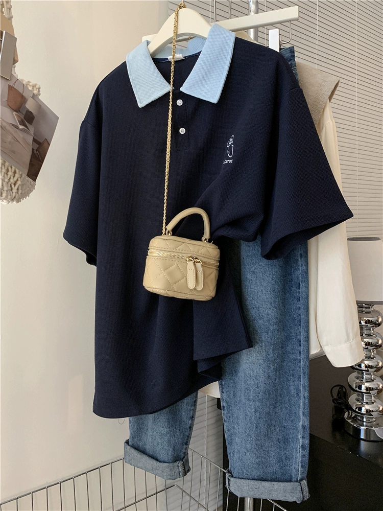| nameOriginal | Fat sister summer new large size waffle polo shirt short-sleeved T-shirt women's design niche loose top |