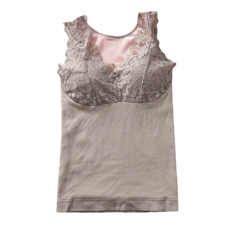 Fattening Extra Large Seamless Thermal Underwear Women's Vest Seamless fleece-lined Thickened Slim-Fit Lace Base Vest