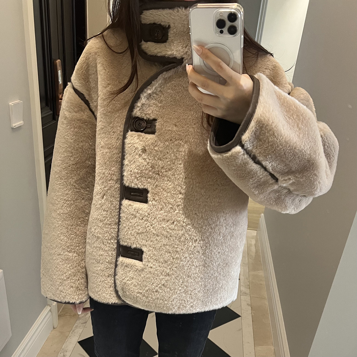 | nameOriginal | Faux lamb fur loose stand collar long sleeve coat jacket thickened windproof 2023 Autumn New 1211804001 |