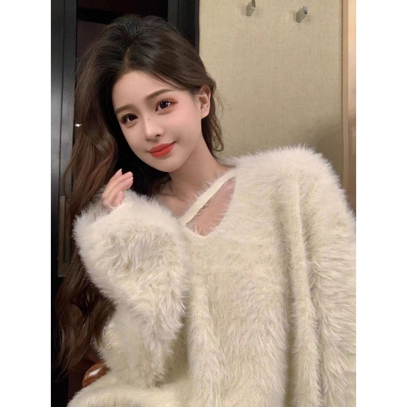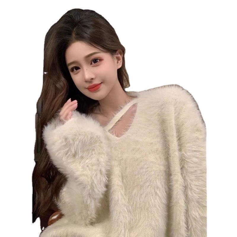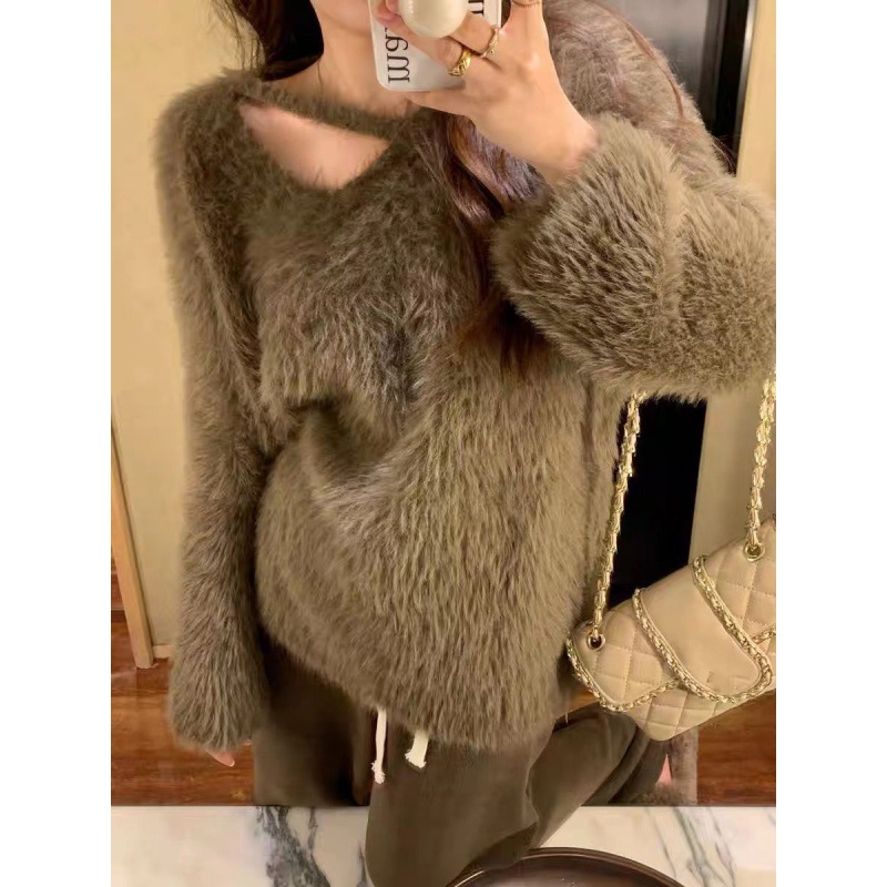 | nameOriginal | Faux mink velvet autumn and winter lazy style top soft glutinous collar milk Huhu loose sweater new hot girl sweater |
