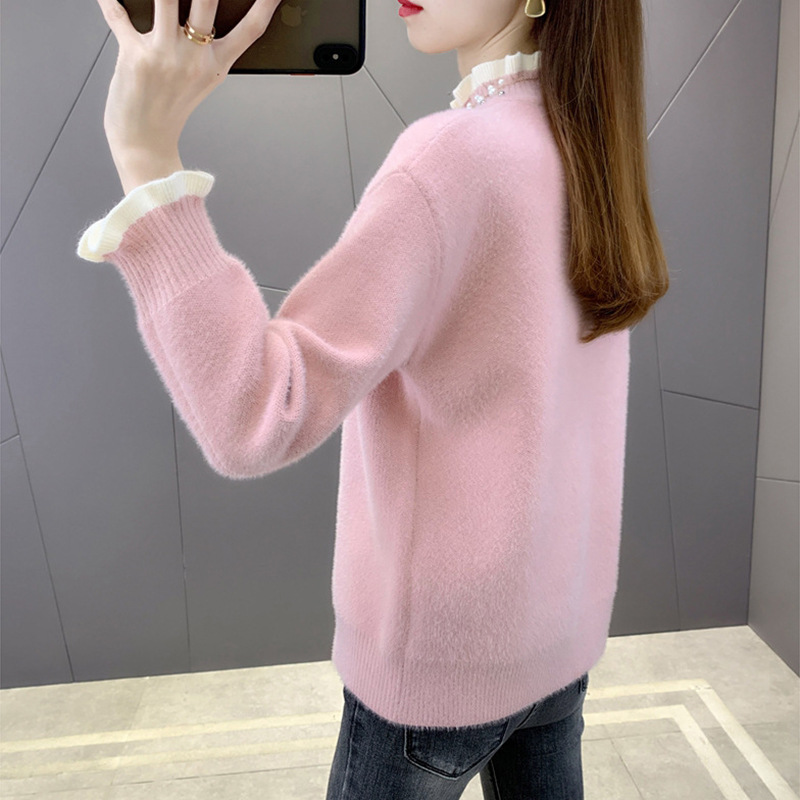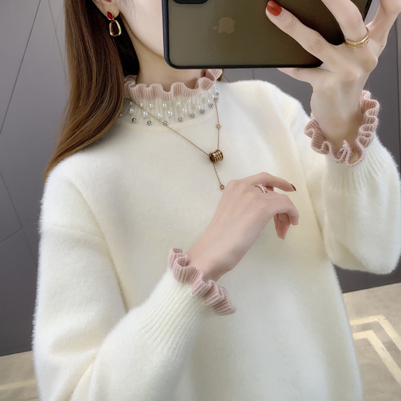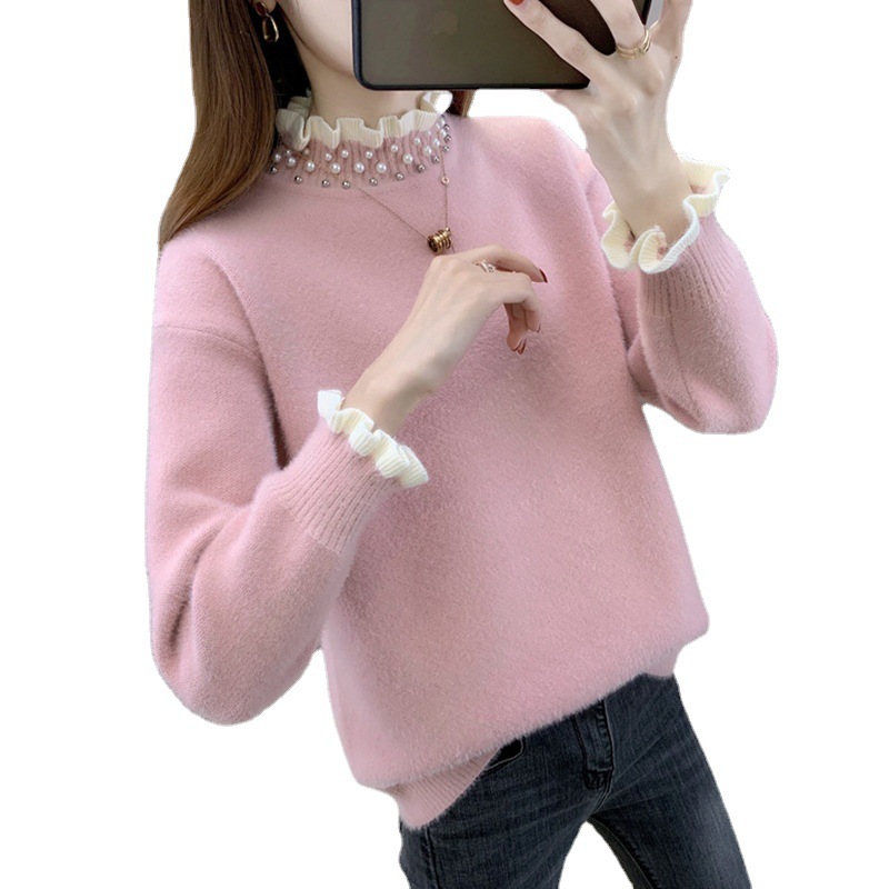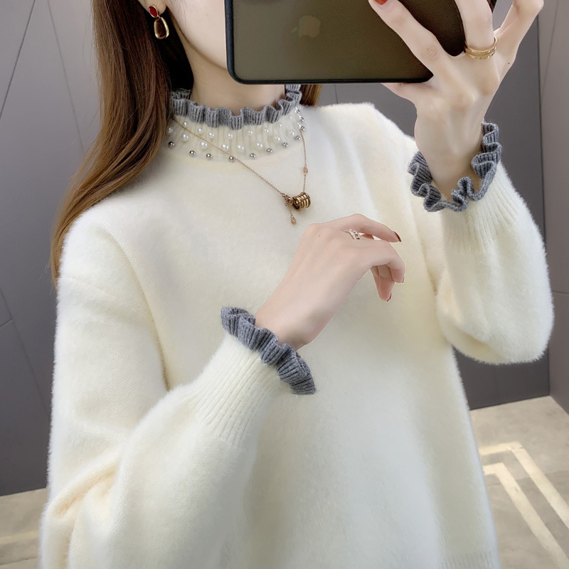 | nameOriginal | Faux mink velvet thickened half turtleneck knitted bottoming shirt for women autumn and winter New loose inner wooden ear sweet sweater |