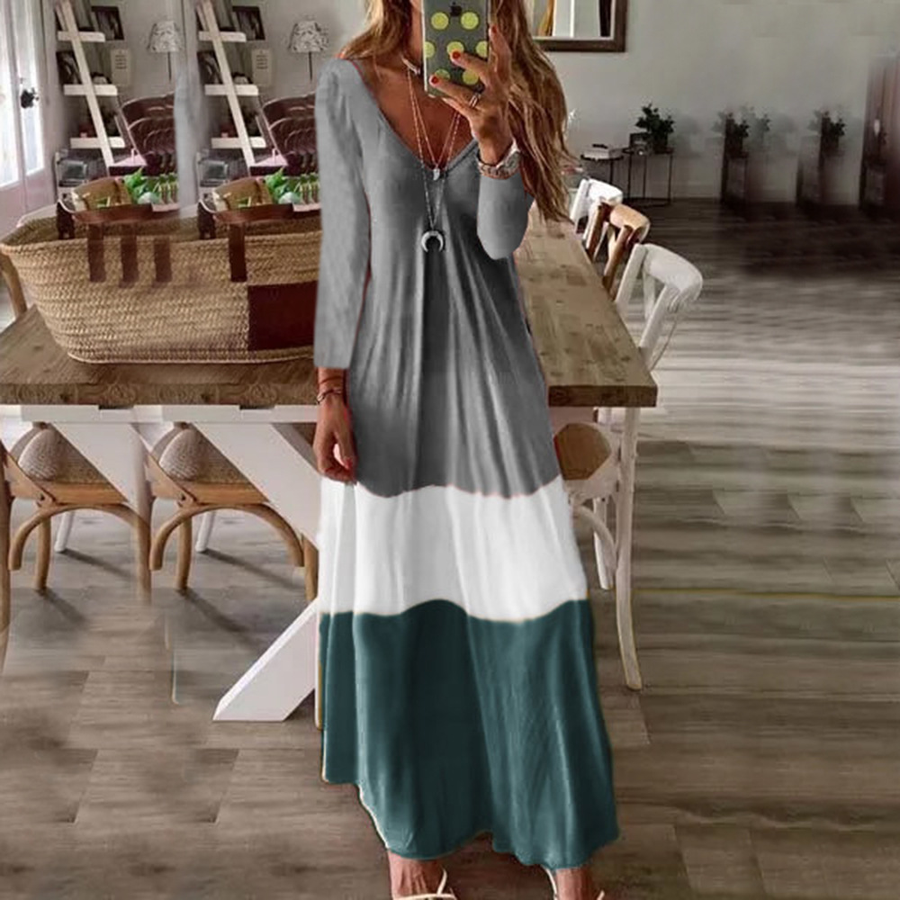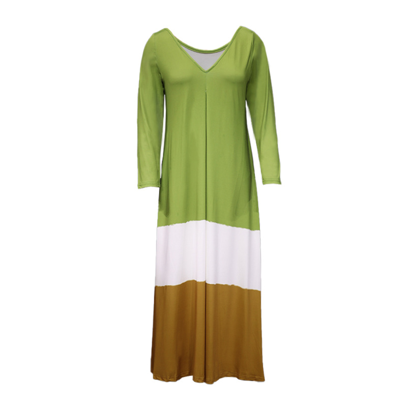 FC617 Women's 2022 Autumn New Amazon Hot Selling European and American Large Size Loose V-neck Long Sleeve Dress