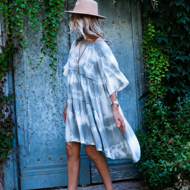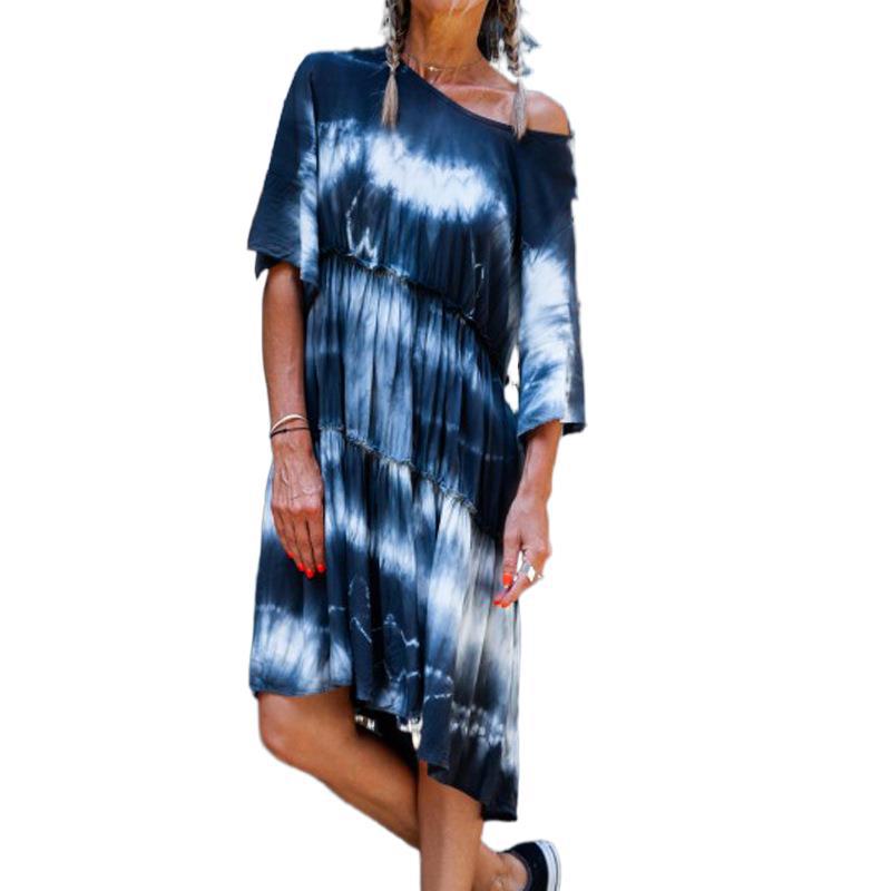 | nameOriginal | FC623 2022 Autumn and Winter New Women's Clothing Amazon European and American Crewneck Mid-Sleeve Tie-Dye Loose Dress |
