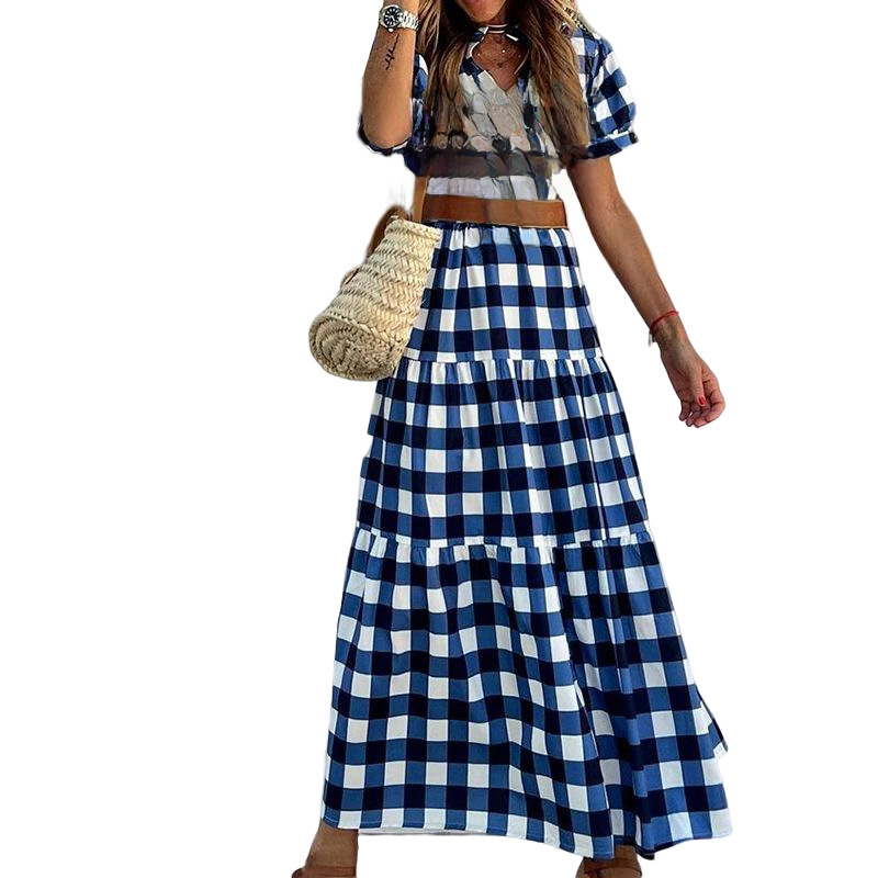 | nameOriginal | FD1002 in stock 2022 summer New Fashion stand collar short sleeve bohemian mid-length plaid dress |