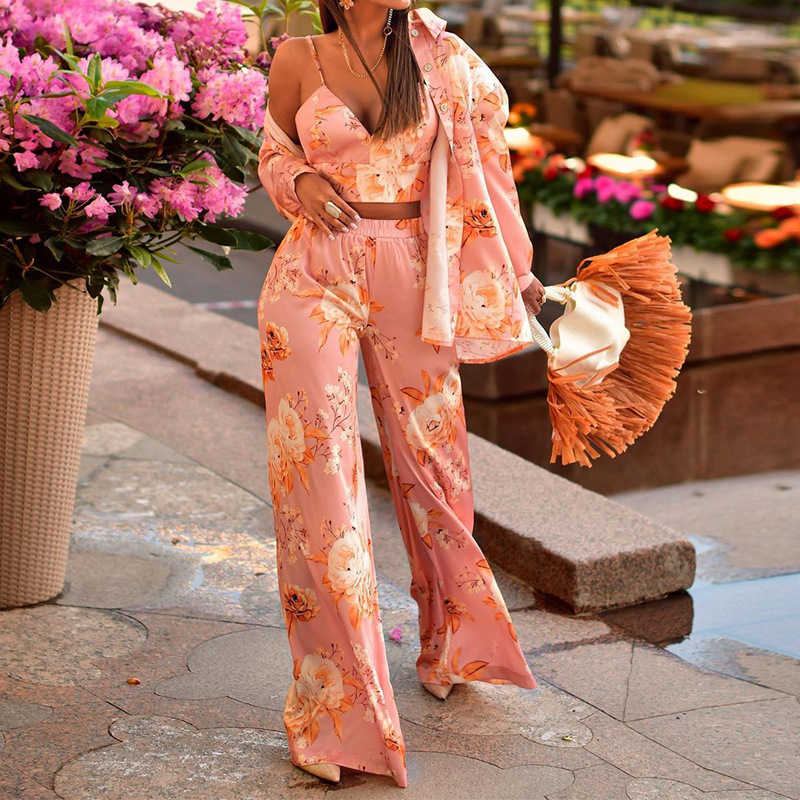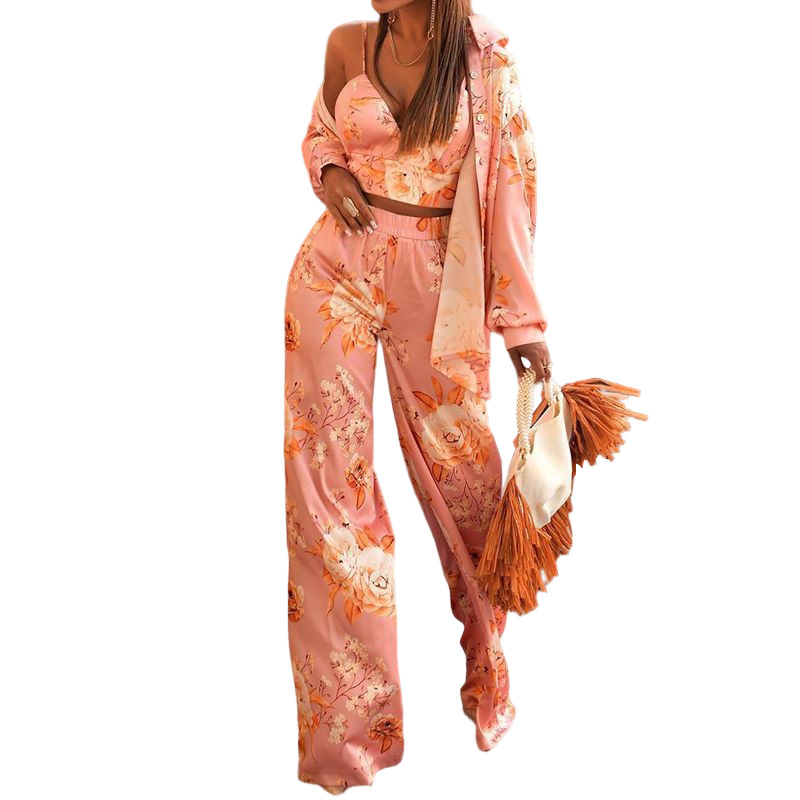 FD1020 spot cross-border Women’s 2022 Autumn New Fashion long sleeve printed shirt straight trousers suit