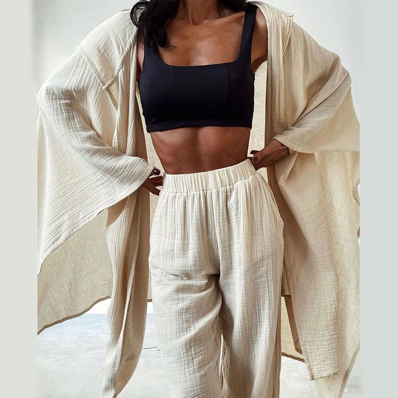 | nameOriginal | FD1051 in stock Cross-border 2024 Autumn New Women's Long-sleeved Irregular Cotton and Linen Home Clothes Two-piece suit |