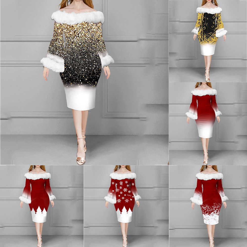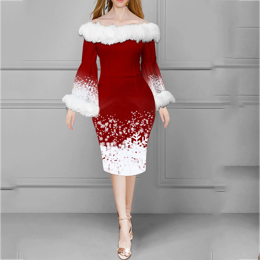 | nameOriginal | FD1151 spot 2023 Europe and the United States cross-border new Christmas fashion temperament Mao Mao collar hip dress women |