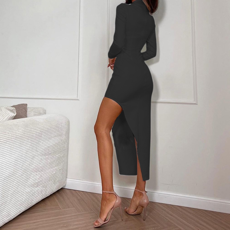 | nameOriginal | FD1174 spot 2023 spring new women's high collar solid color sexy irregular hip mid-length dress |