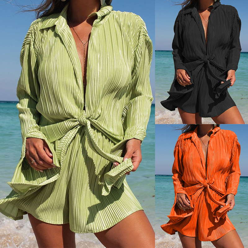 | nameOriginal | FD1251 spot 2023 spring and summer new cross-border women's fashion lapel long sleeve cardigan shorts two-piece set |
