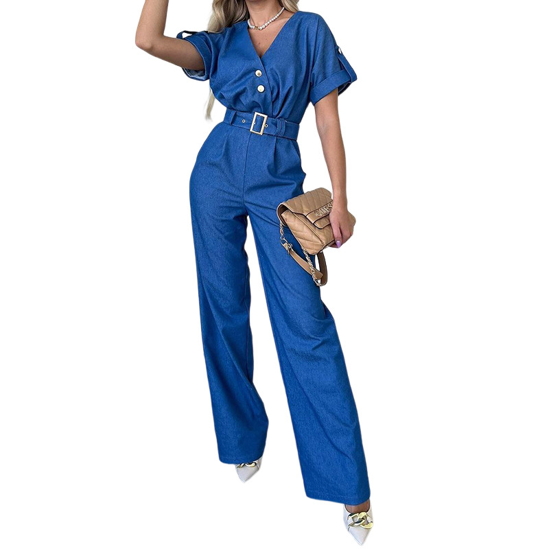 | nameOriginal | FD1287 in stock 2023 cross-border summer new women's fashion temperament V-neck short sleeved straight jumpsuit |