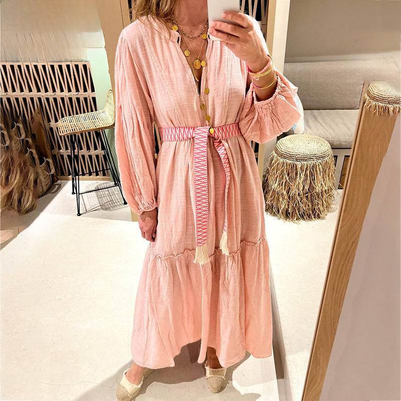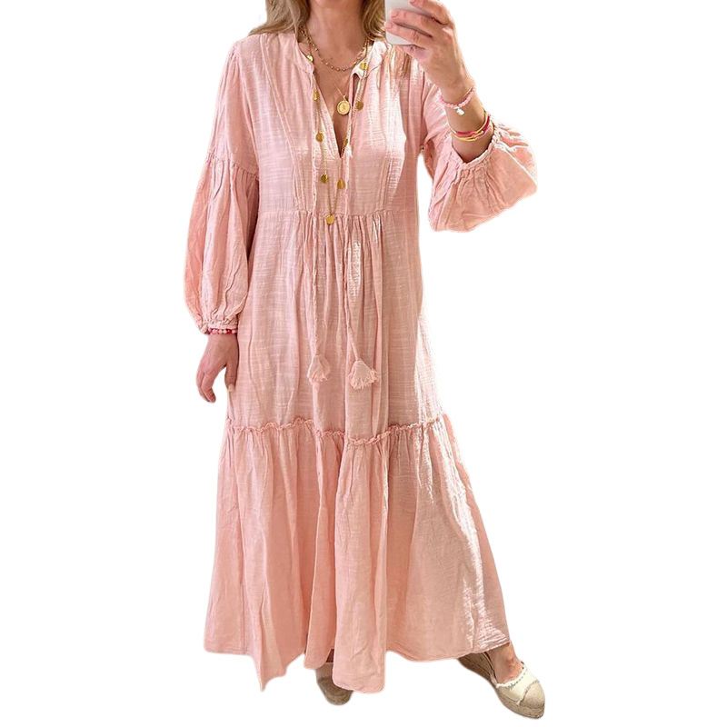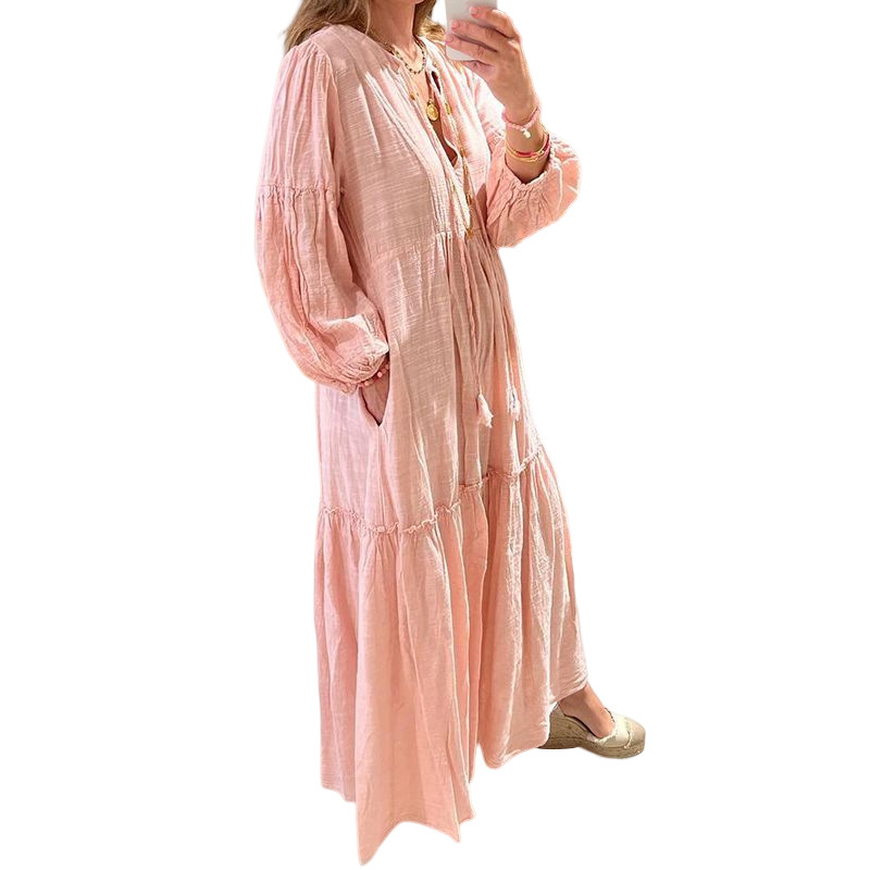 | nameOriginal | FD1315 in stock 2023 autumn new cross-border women's fashion V-neck puff sleeve bohemian cotton and linen dress |