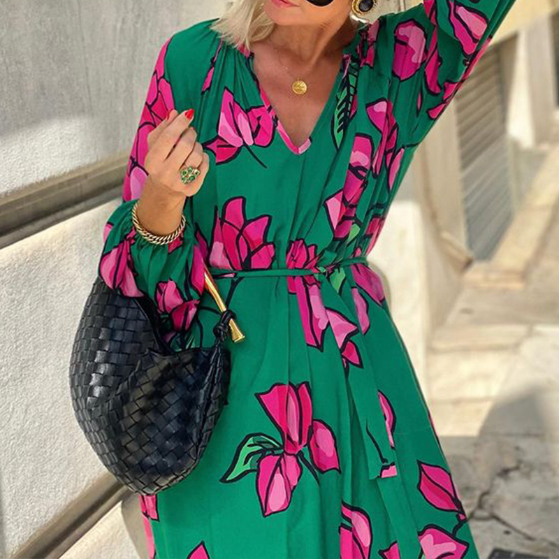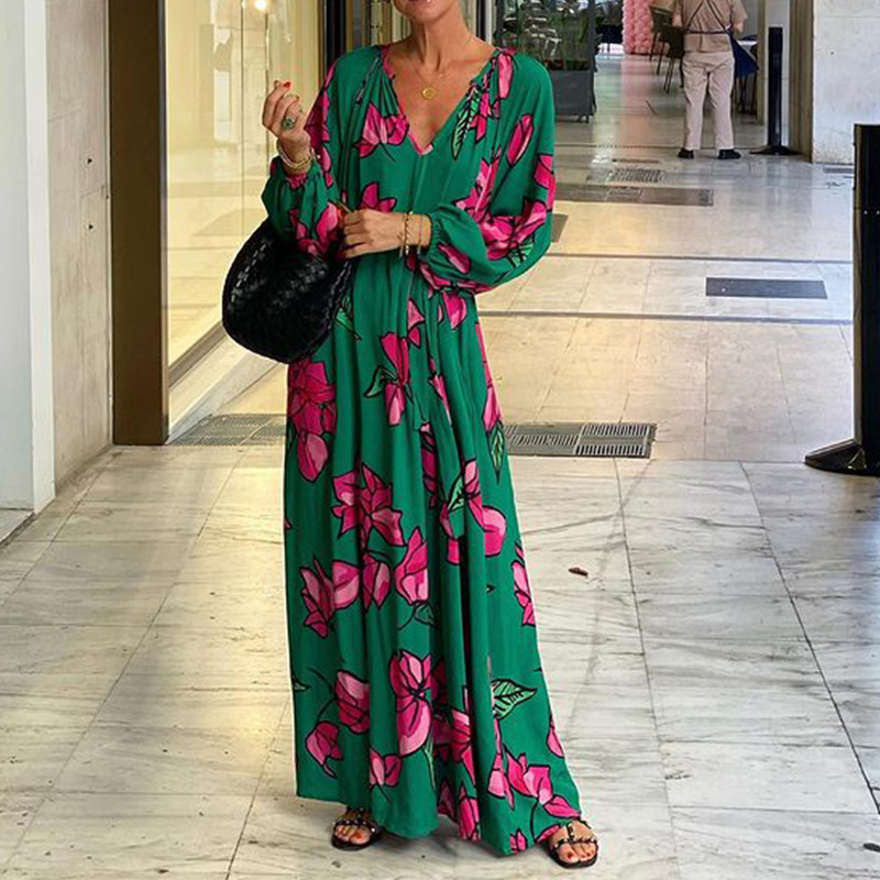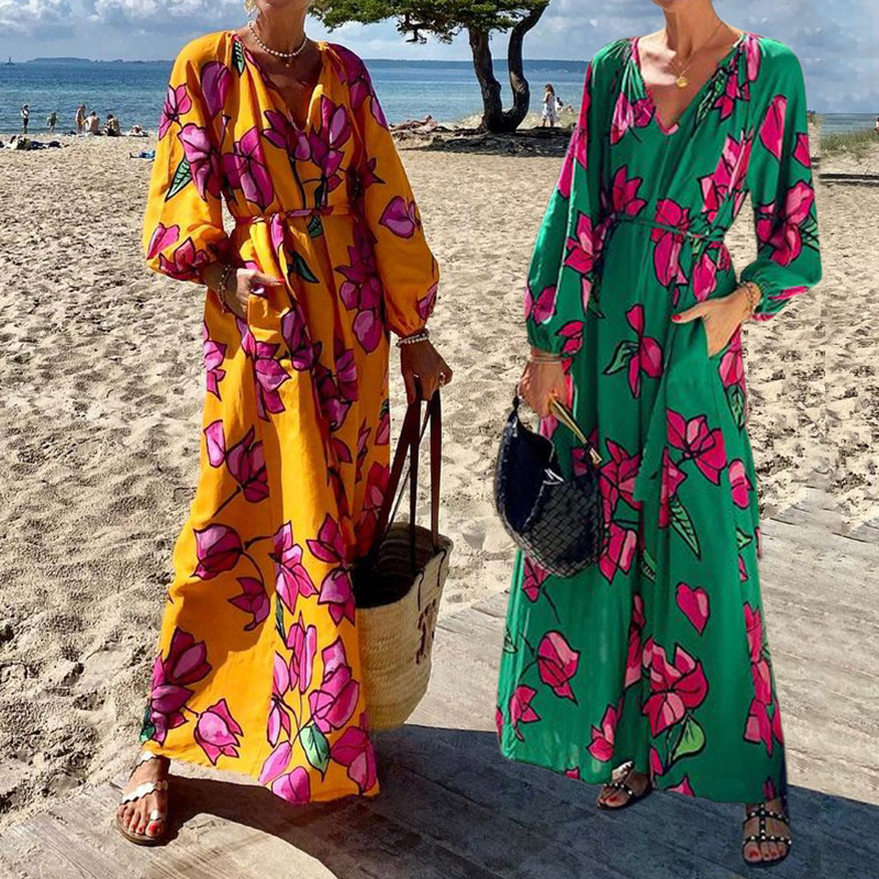 | nameOriginal | FD1424 in stock 2024 spring new cross-border women's fashion printed V-neck leisure vacation beach dress |