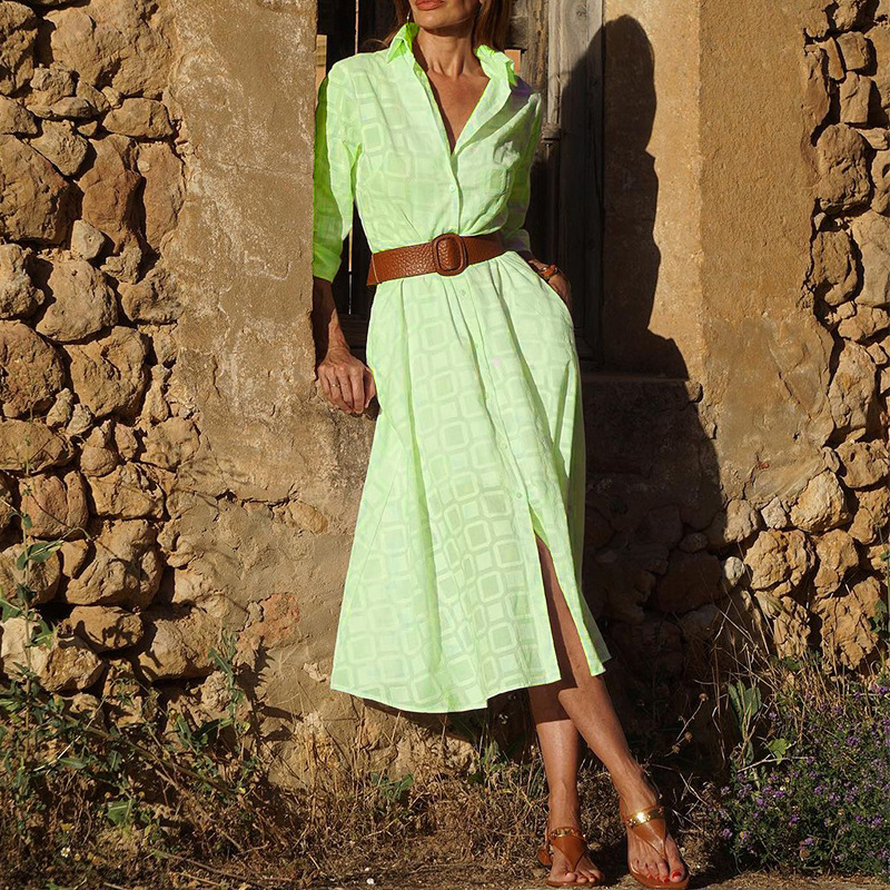 | nameOriginal | FD1427 2024 spring and summer new cross-border women's fashion temperament check print long shirt dress |