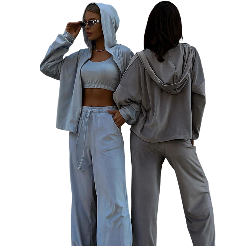 | nameOriginal | FD1446 in stock 2023 autumn and winter new cross-border women's fashion velvet hooded jacket vest trousers three-piece set |