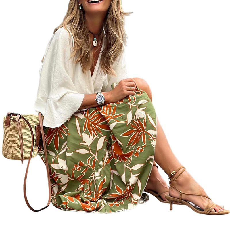| nameOriginal | FD1477 in stock 2023 Spring and Autumn new cross-border women's fashion printed A- line elastic waist casual skirt |
