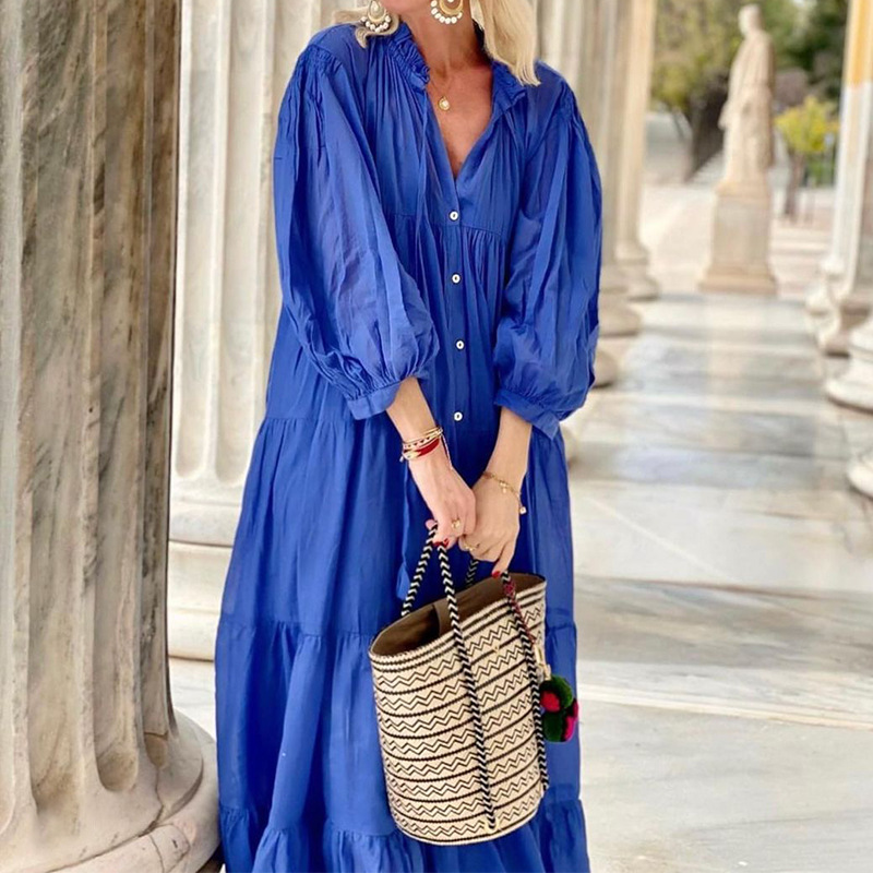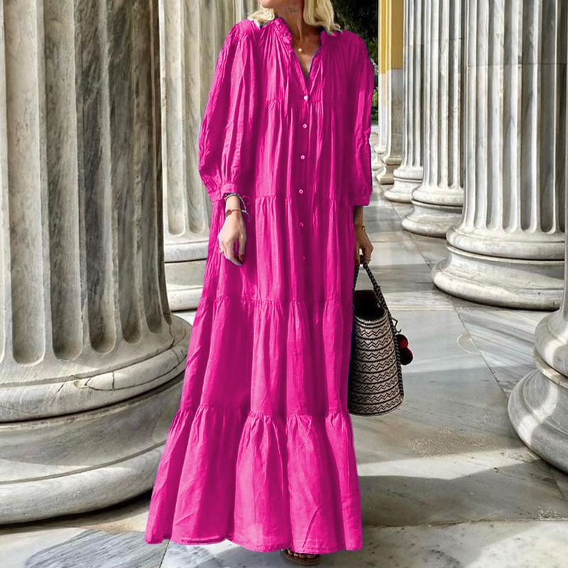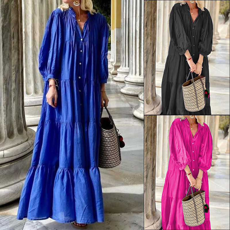 | nameOriginal | FD1479 in stock 2023 autumn and winter new cross-border Women's solid color long bohemian loose cotton and linen dress |