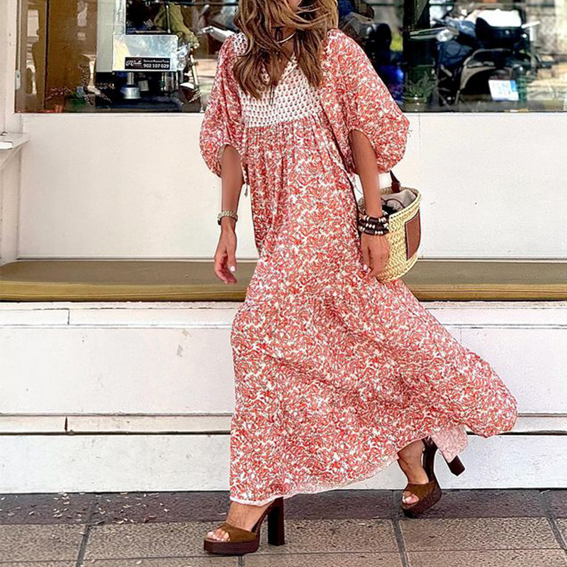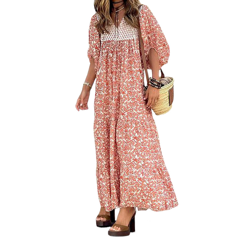 | nameOriginal | FD1630 2024 spring and summer new cross-border women's fashion temperament printed V-neck bubble sleeve long dress |