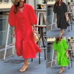 | nameOriginal | FD1652 2024 spring and summer new cross-border women's fashion temperament solid color stand collar single-breasted long dress |