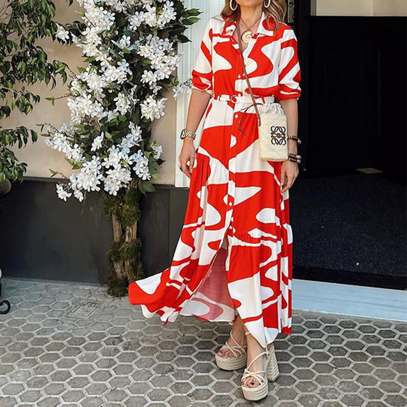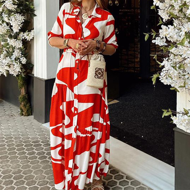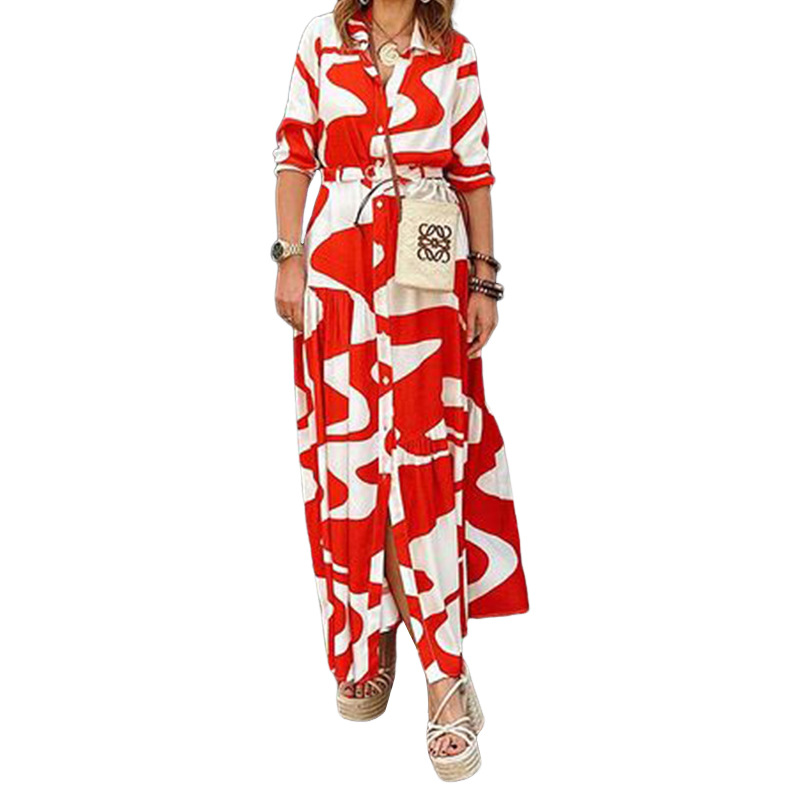 | nameOriginal | FD1653 2024 spring and summer new cross-border women's fashion temperament printed cardigan with belt long dress |