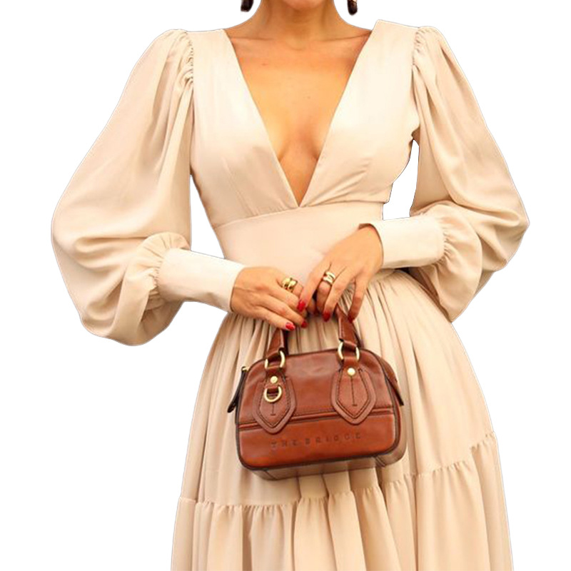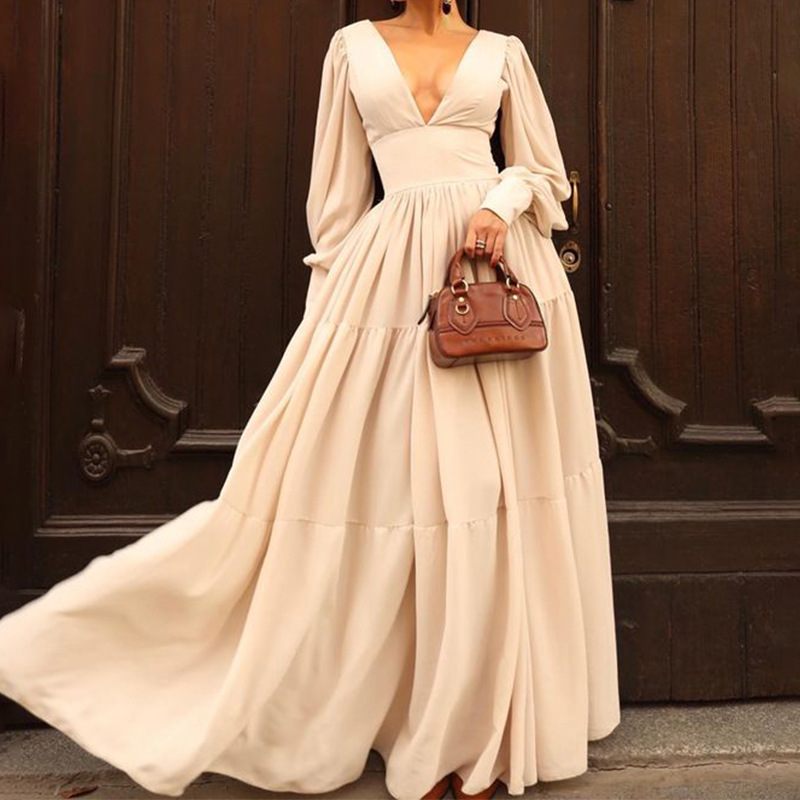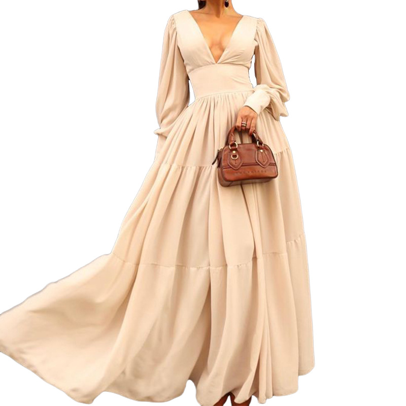 | nameOriginal | FD1673 2024 Spring and Summer New Cross-border Women's Fashion Sexy Solid Color V-neck Waist Large Swing Mid-length dress |