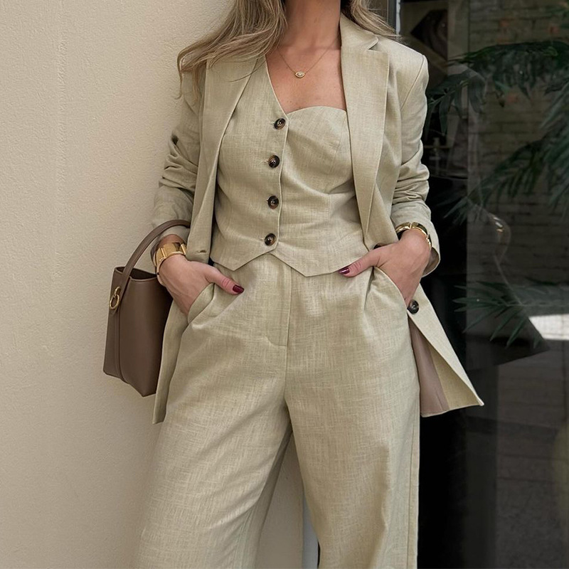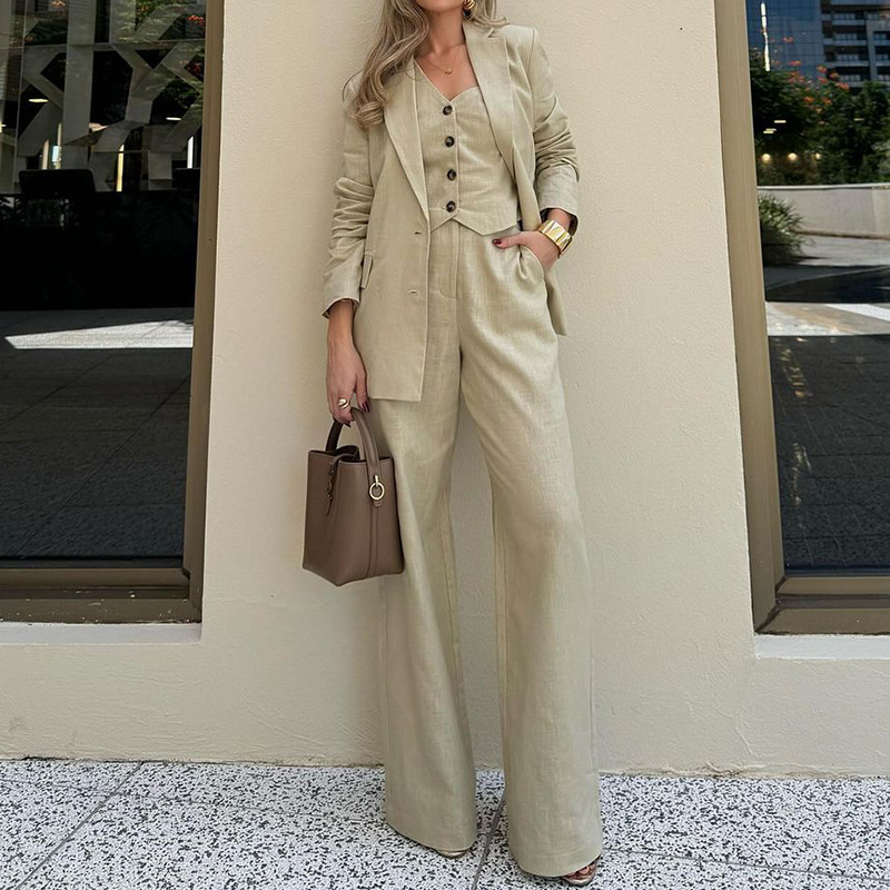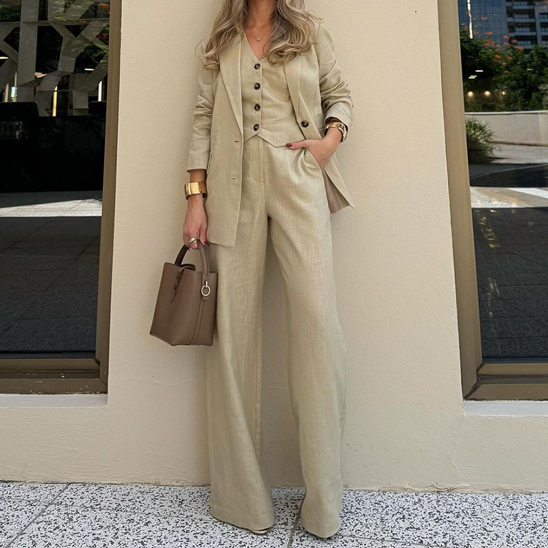 | nameOriginal | FD1697 2024 autumn and winter new cross-border women's fashion temperament solid color long suit wide leg pants two-piece set |