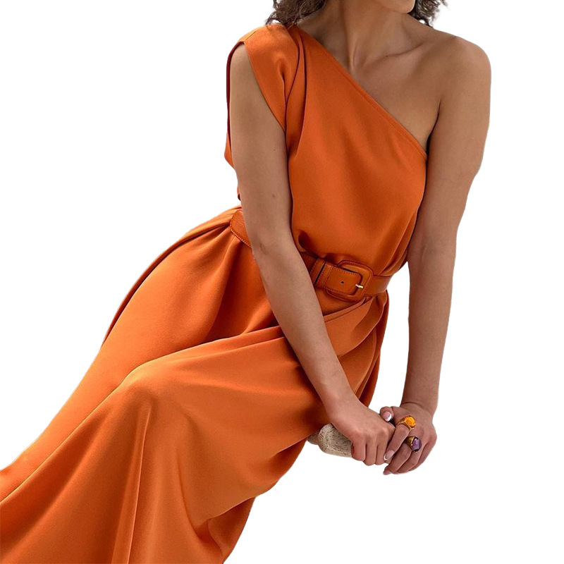 | nameOriginal | FD1713 Spring and Summer 2024 New Cross-border Women's Fashionable Elegant Solid Color Inclined Shoulder with Belt Long Dress |